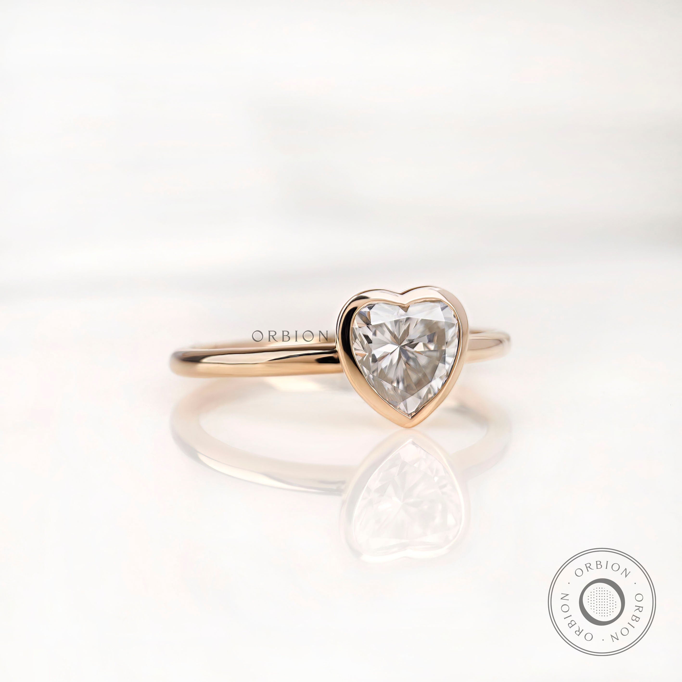 OMC Heart Moissanite Hidden Halo Engagement Closed Basket Bezel Ring 10K Gold Georgian Ring Unique Promise Ring 1 Year Anniversary Gift
