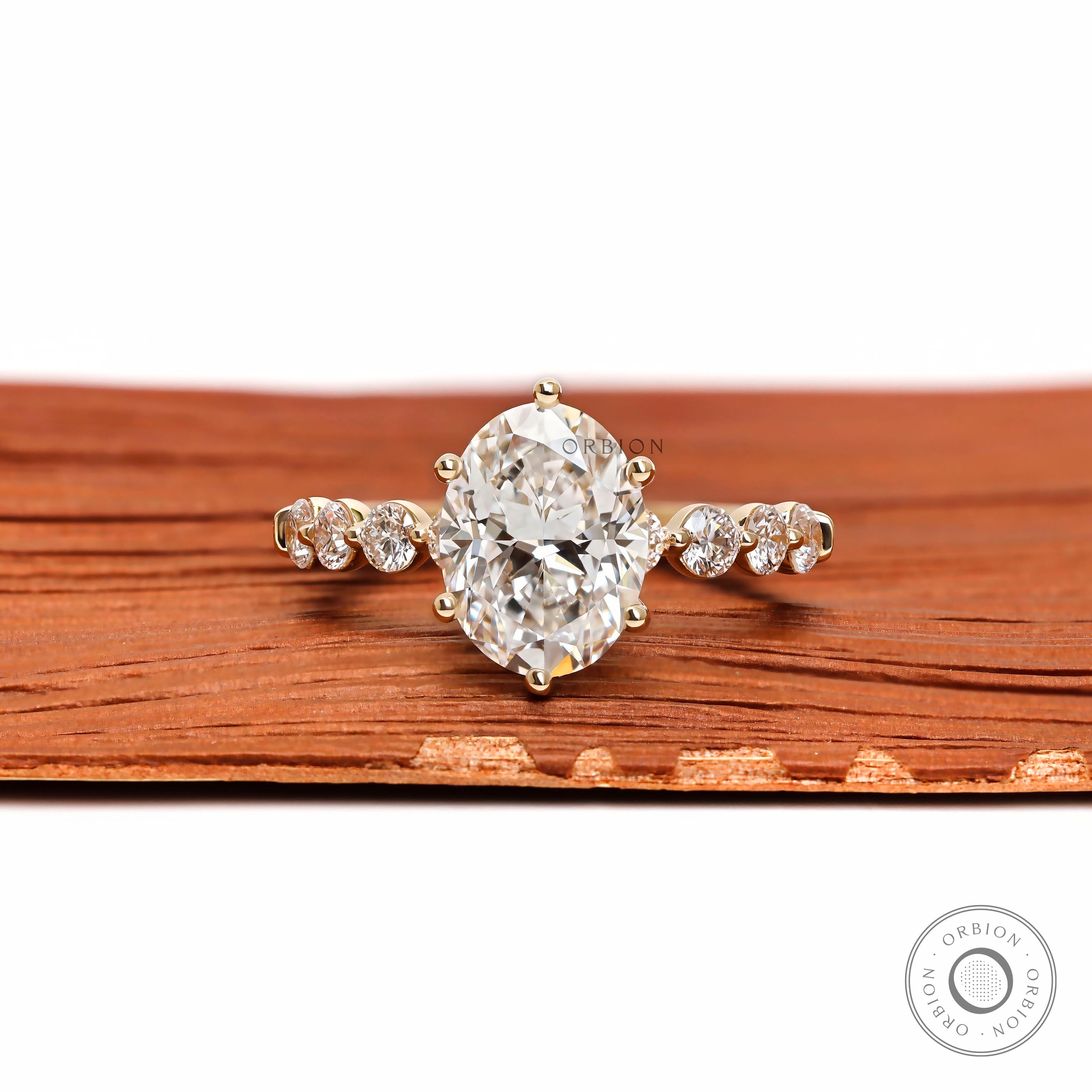 Oval Cut Lab Grown Diamond Engagement Ring 18k Yellow Gold Shared Prong Set Band Solitaire Ring With Side Stones Moissanite Promise Ring