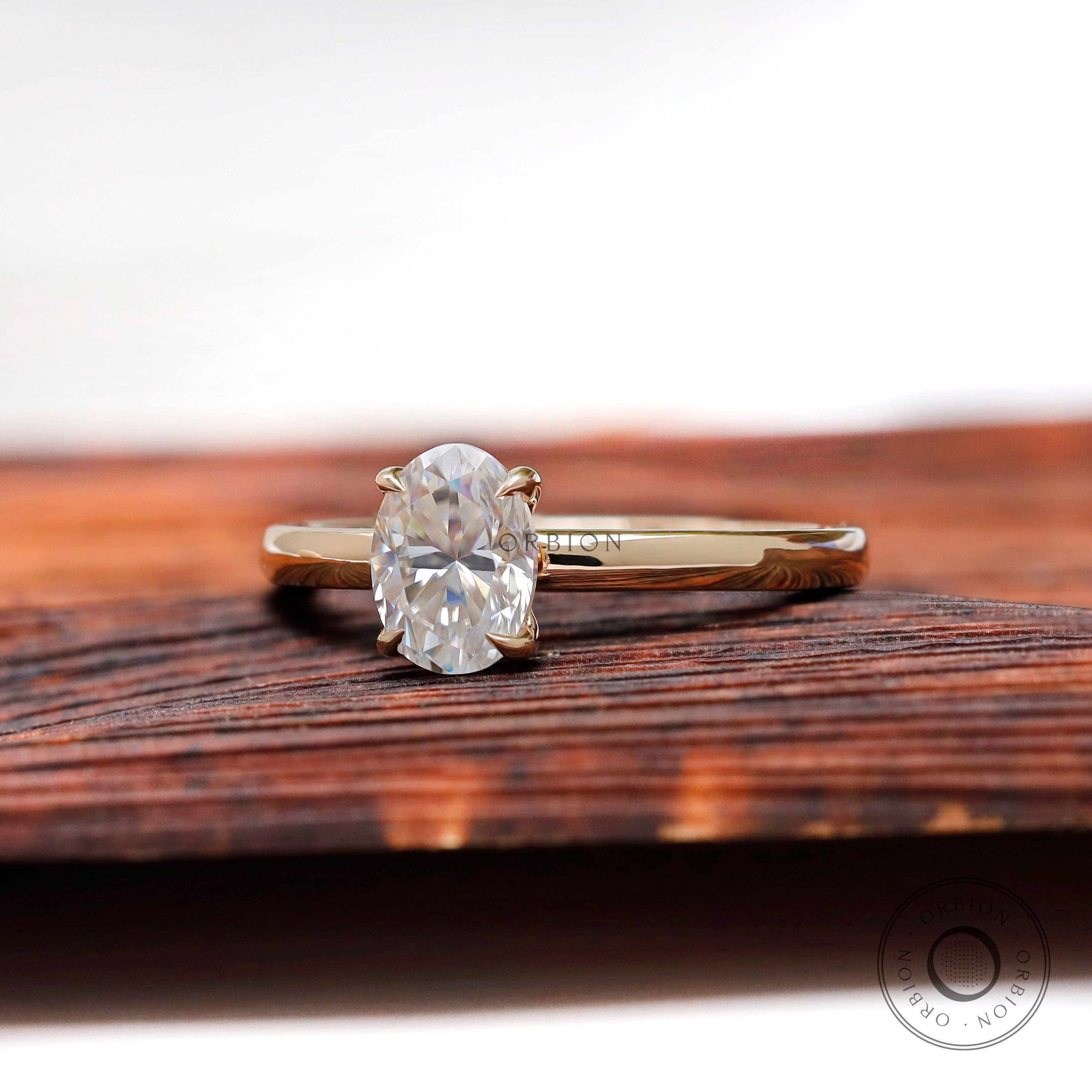 Oval Moissanite Engagement Ring in Yellow Gold Simple Rings For Women Promise Ring Oval 4 Prong Ring Dainty Oval Martini Setting Ring