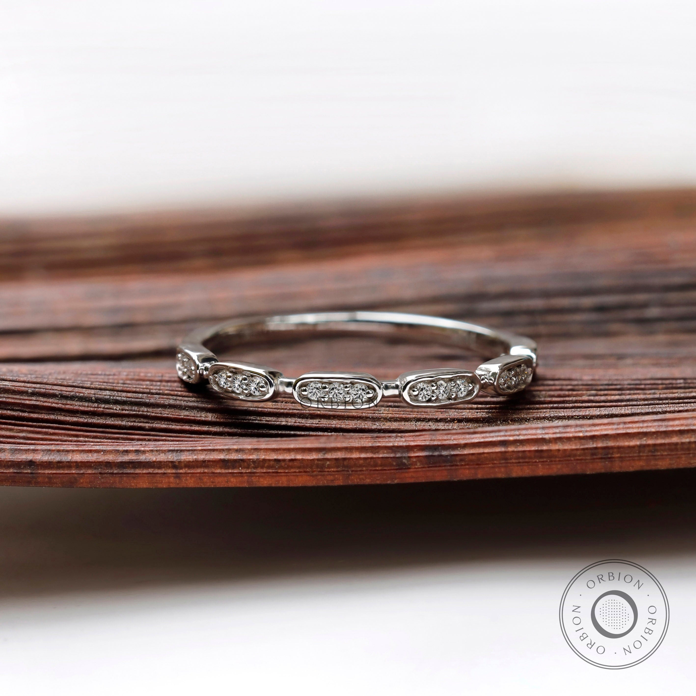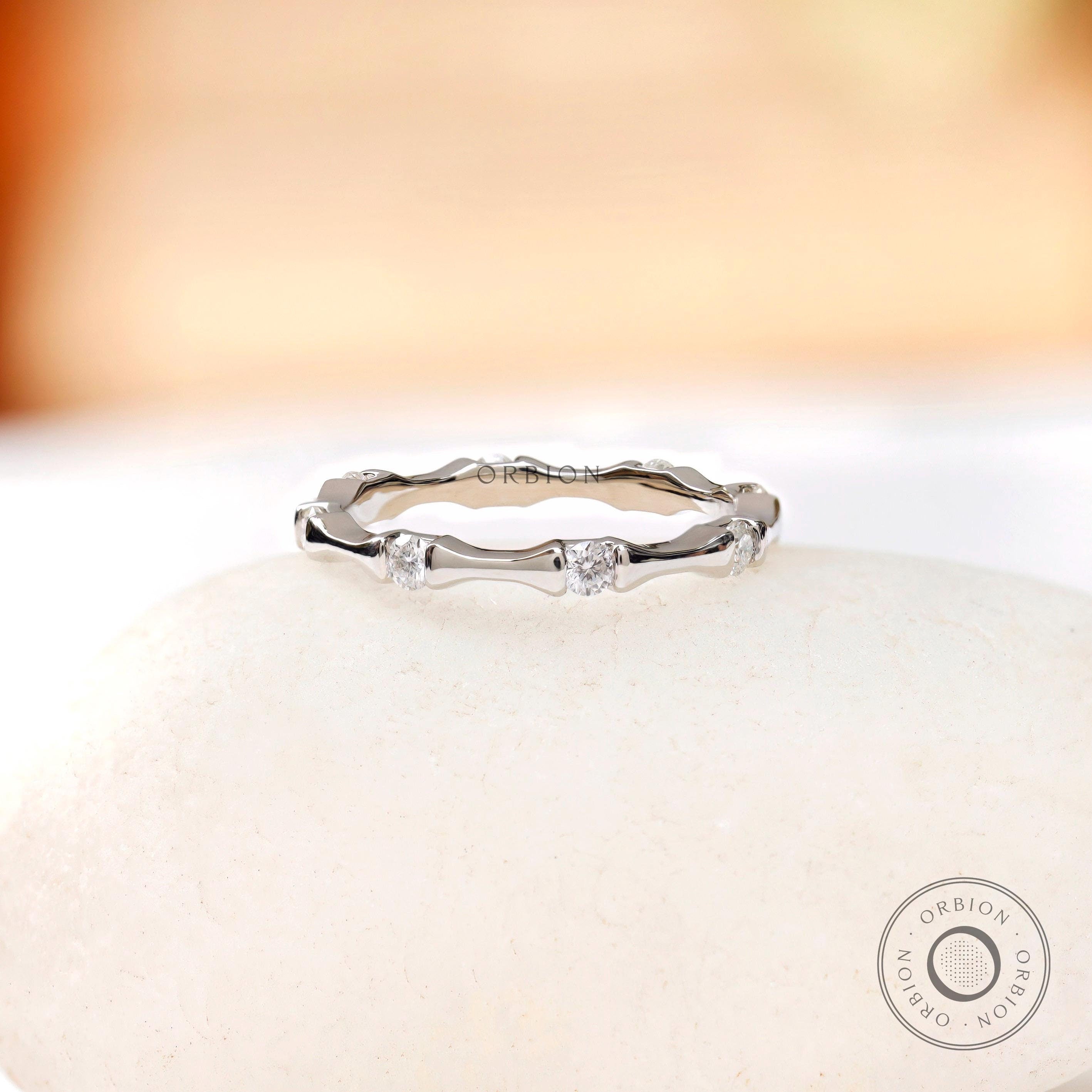 10K/14K/18K White Gold Full Eternity Band, Minimalist Bamboo Ring, Moissanite Wedding Band, Stacking Band, Dainty Ring Gold, Gift For Her