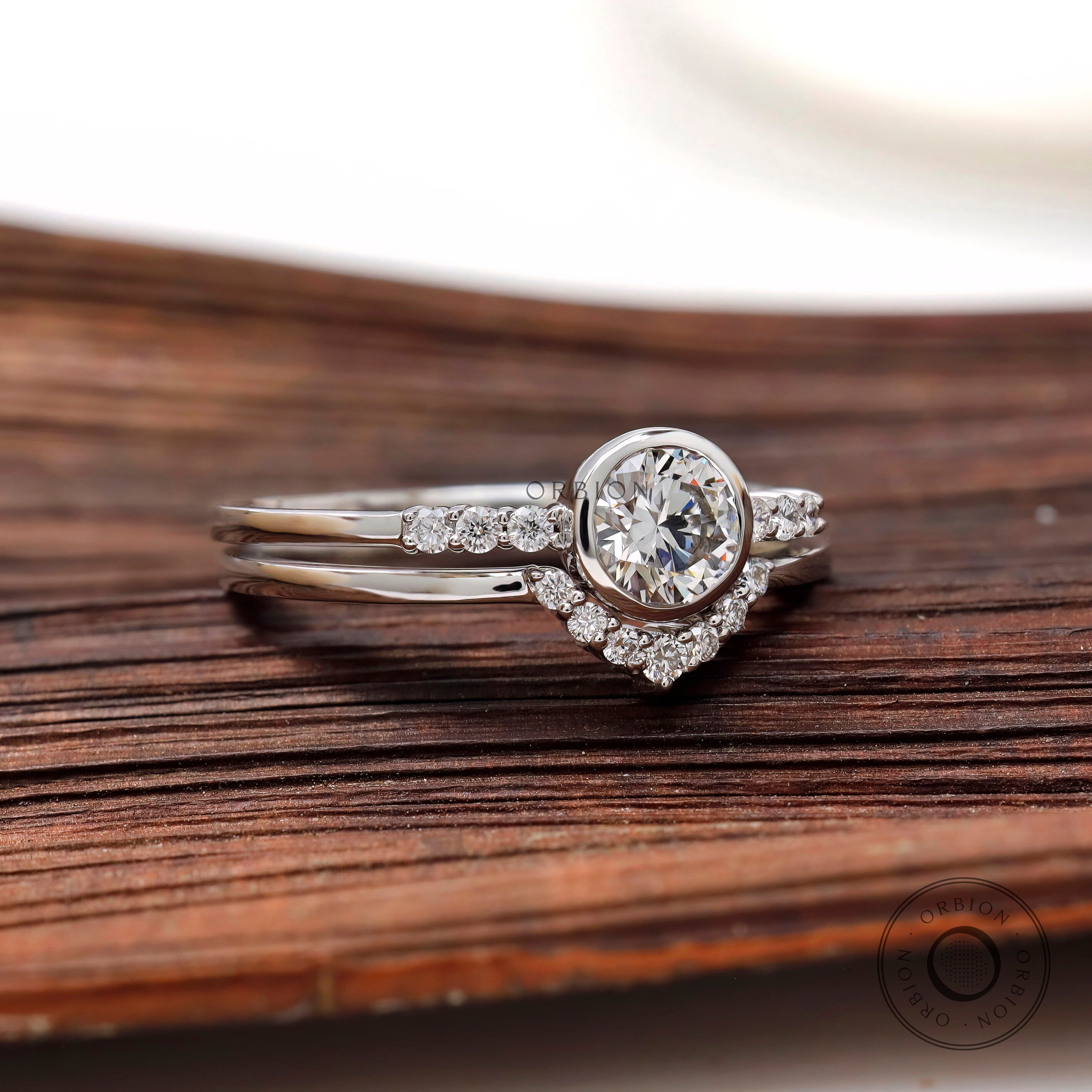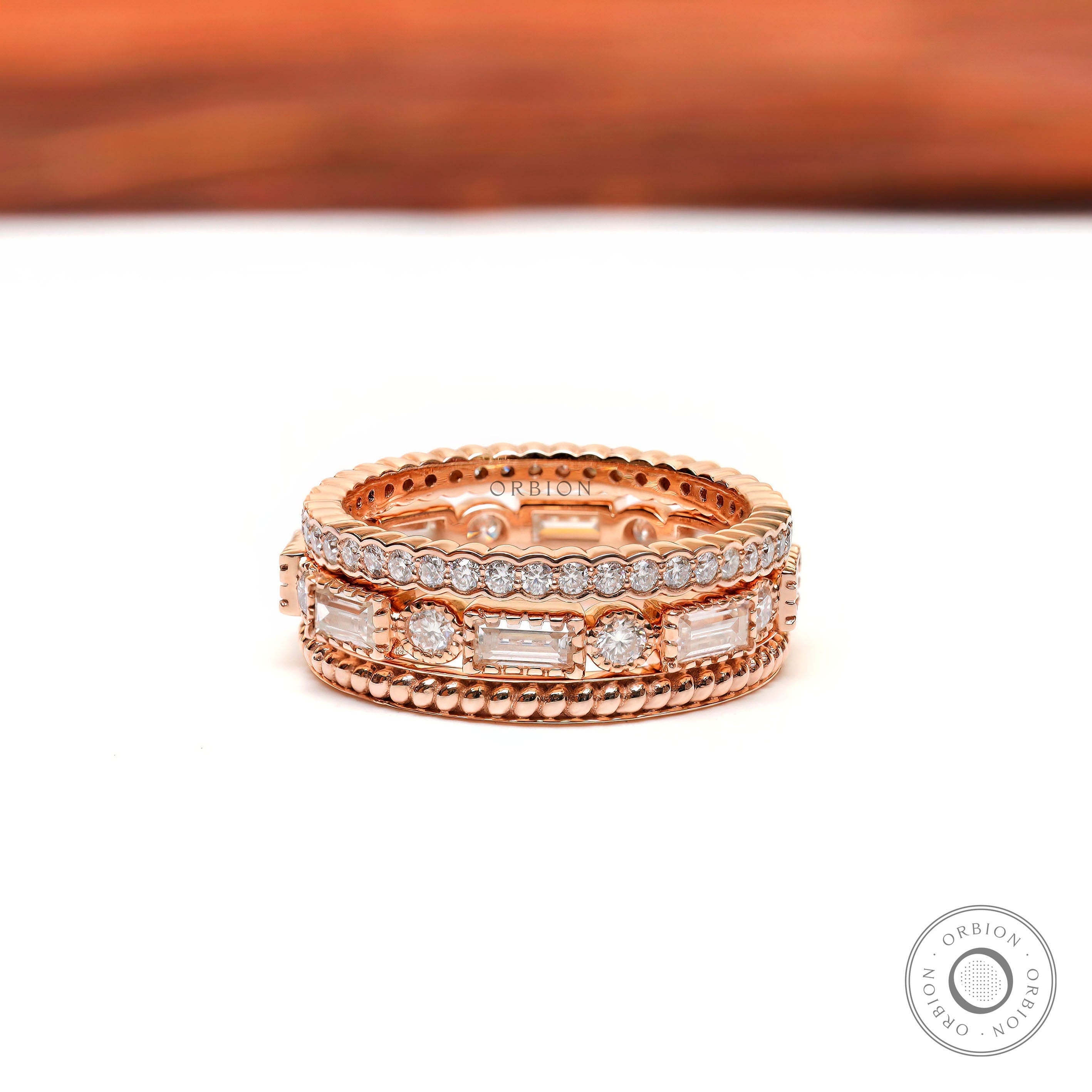 Rose Gold Stacking Bridal Set, Trio Wedding Set, Bridal Sets Diamond, Rings for Wife, Stackable Bands, Engagement Ring, Moissanite Ring