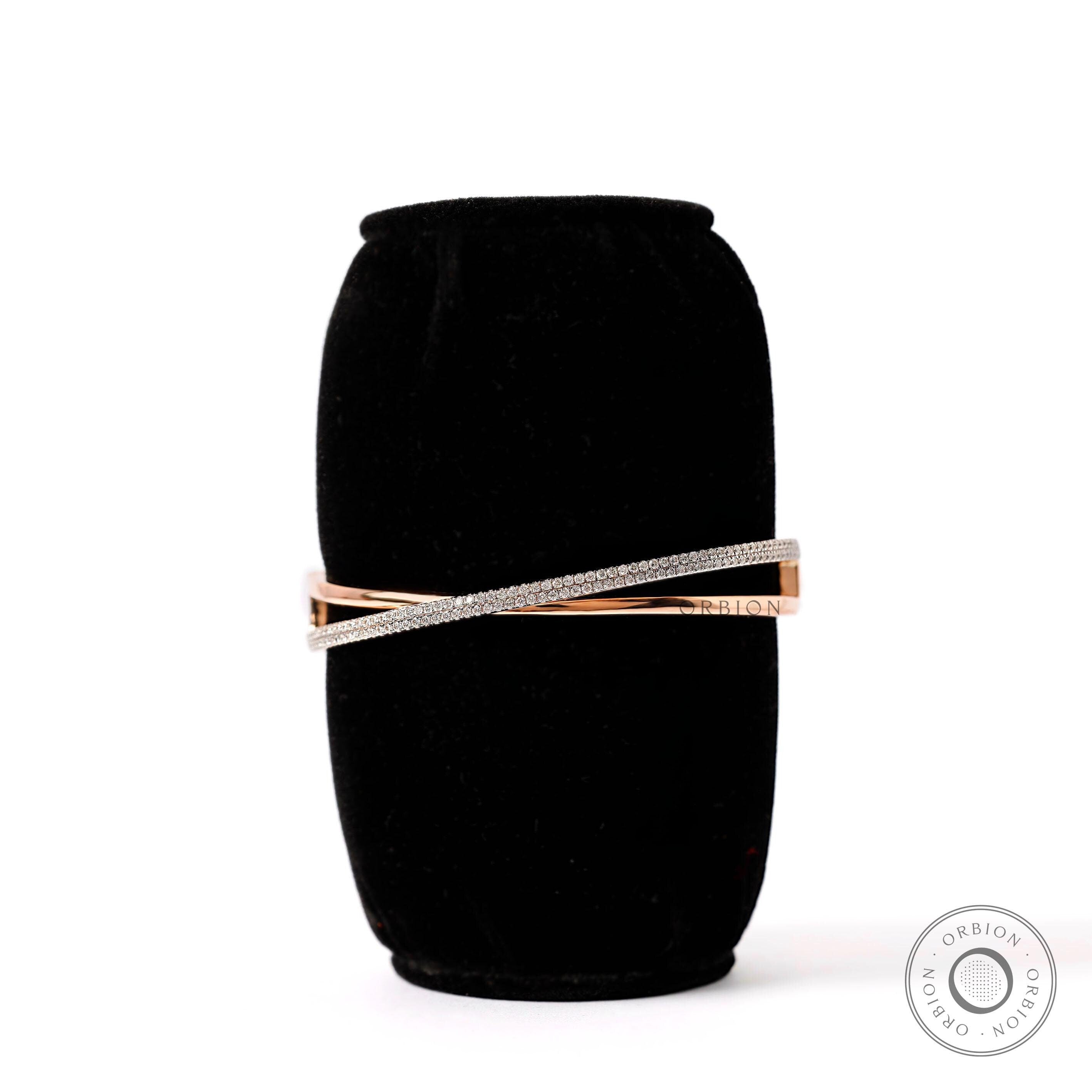 Round Lab Grown Diamond Crossover Bangle Bracelet For Women, 10k/14k/18k Solid Gold Bracelet, Rose Gold Diamond Bracelet, Anniversary Gift