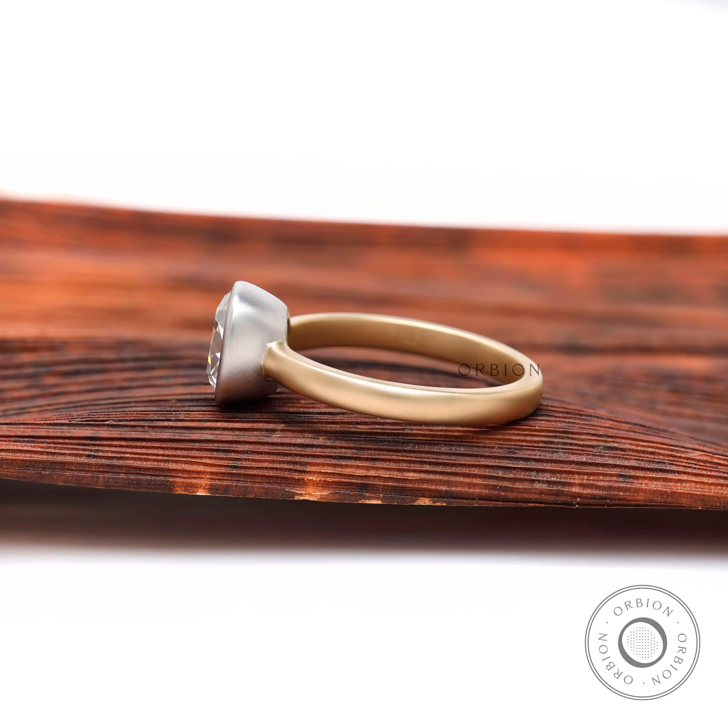 Bezel Set Solitaire Engagement Ring, Vintage Two-Tone Moissanite Engagement Ring Cushion Old Mine Cut Wedding Ring, Anniversary Gift Ring