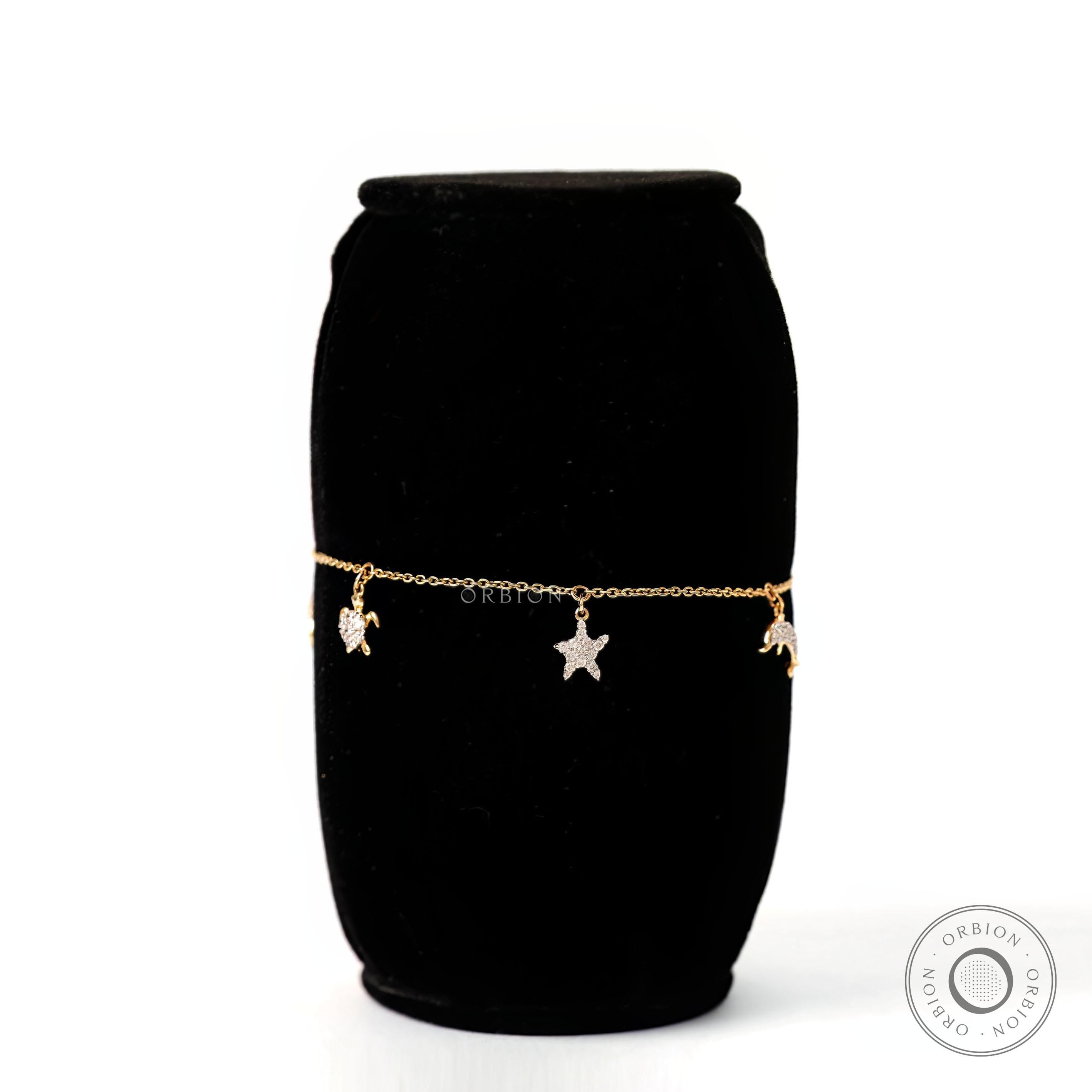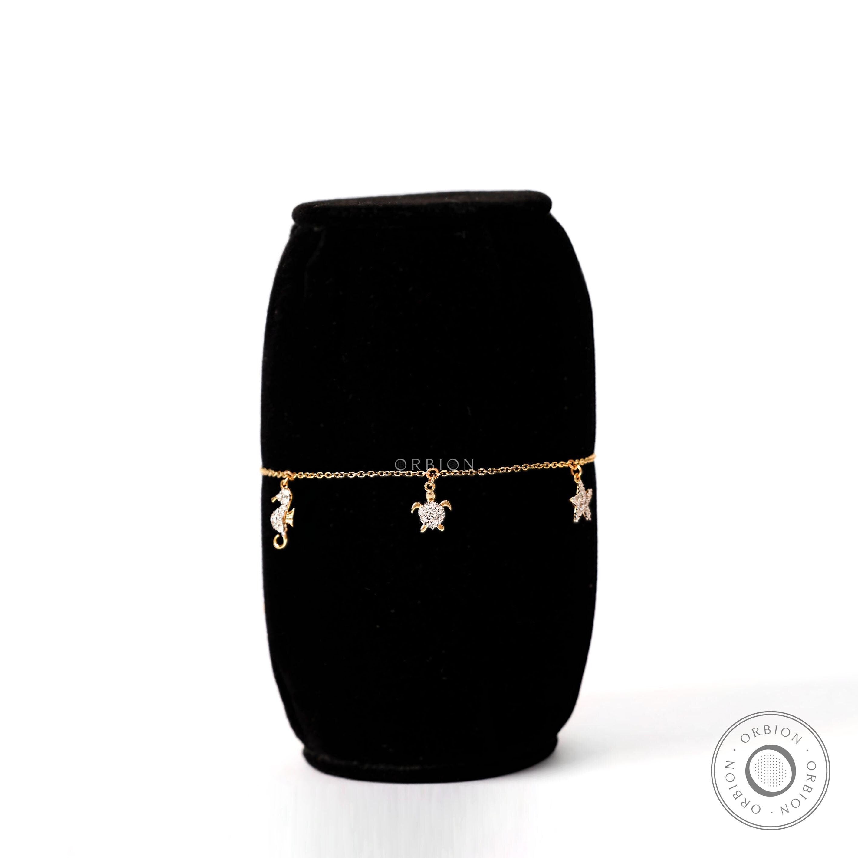 Ocean Charm Bracelet, Marine Life Charm, Sea Charm Bracelet, Starfish Turtle Octopus Charm Bracelet, Bolo Bracelet, Diamond Gold Bracelet