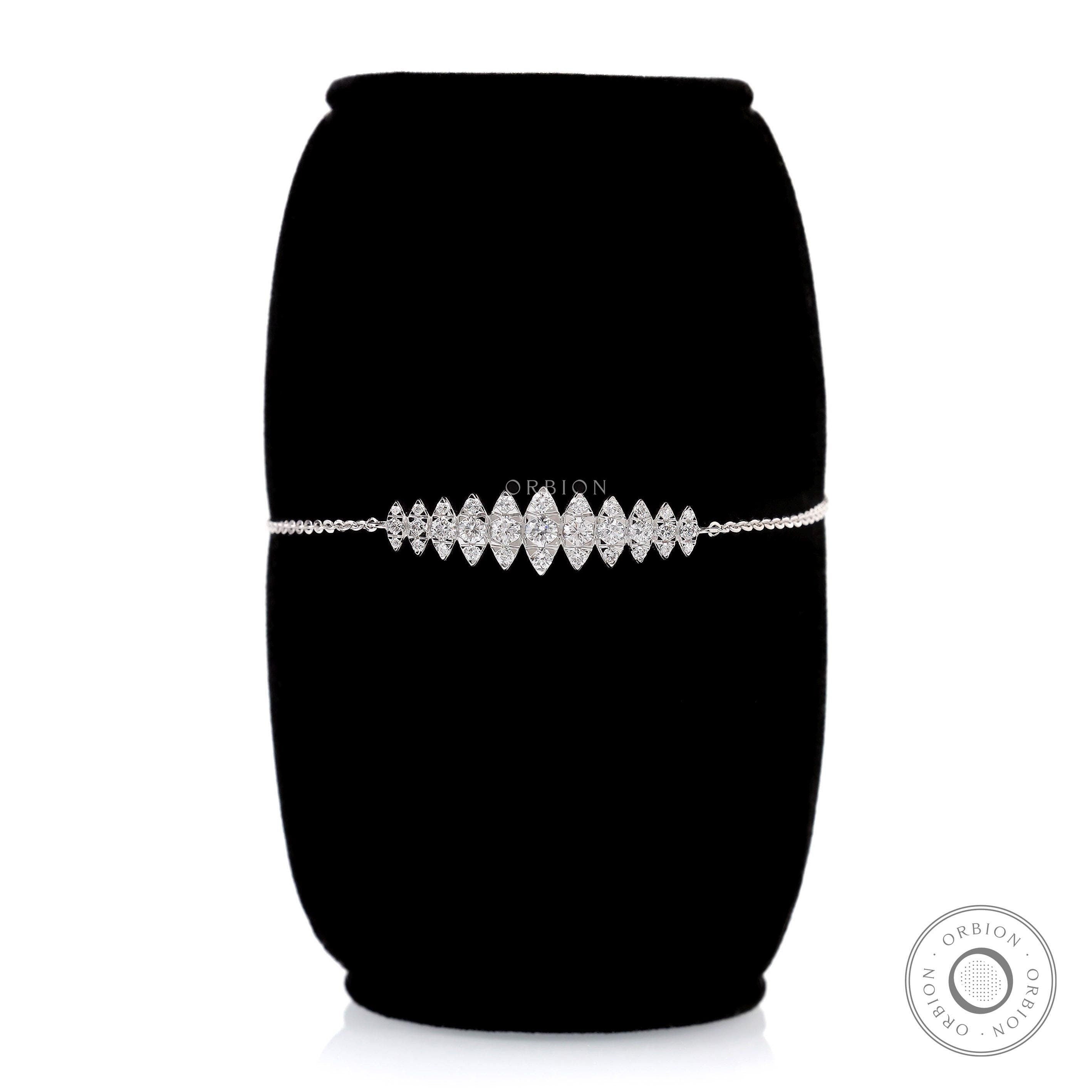 Marquise Shaped Round Lab Grown Diamond Bolo Bracelet For Women, Solid Gold Chain Bracelet, Adjustable Graduating Diamond Slider Bracelet