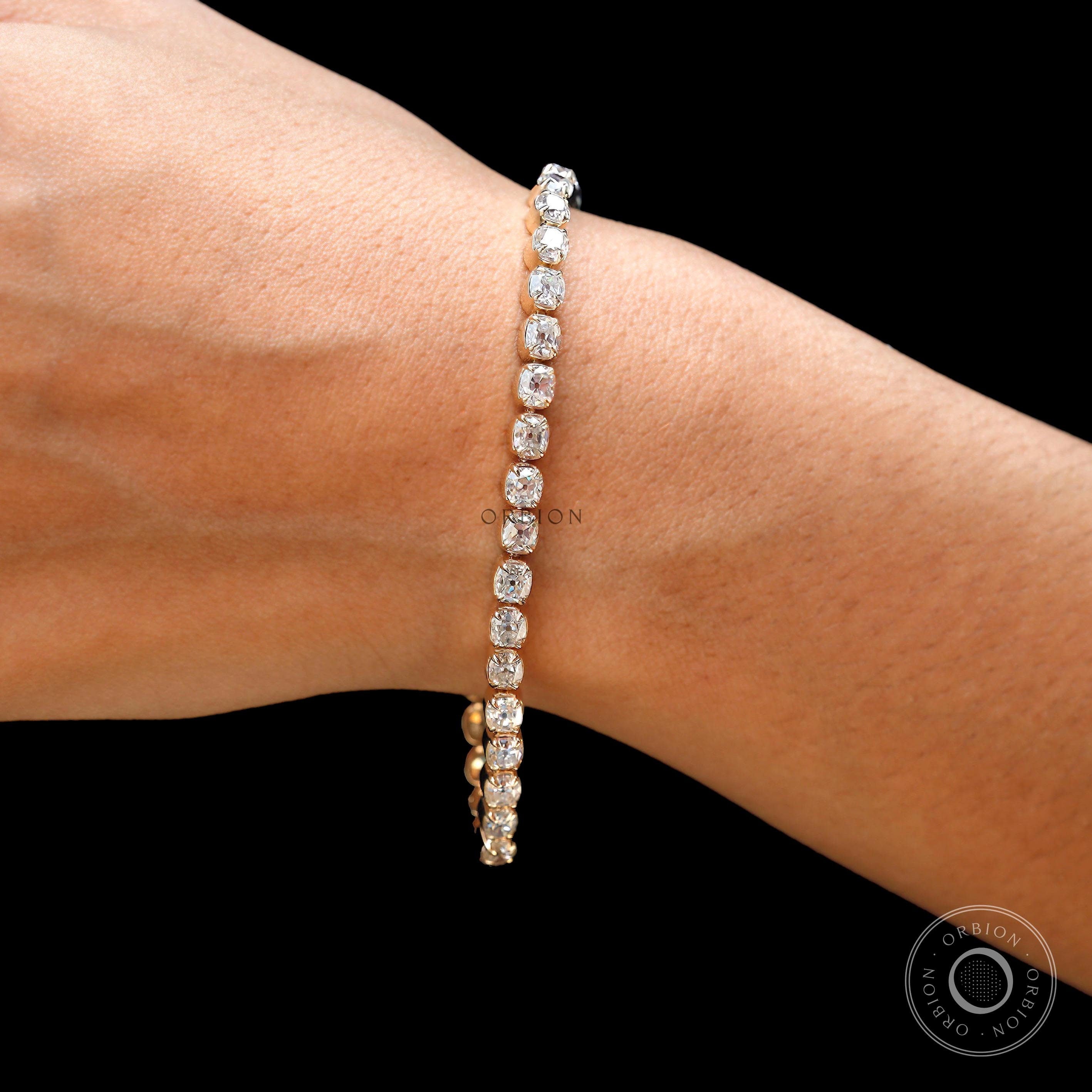 OMC Cushion Moissanite Tennis Bracelet 14k Yellow Gold Old Cut Bracelet for Women Dainty Antique Bracelet For Women Christmas Gift for Her