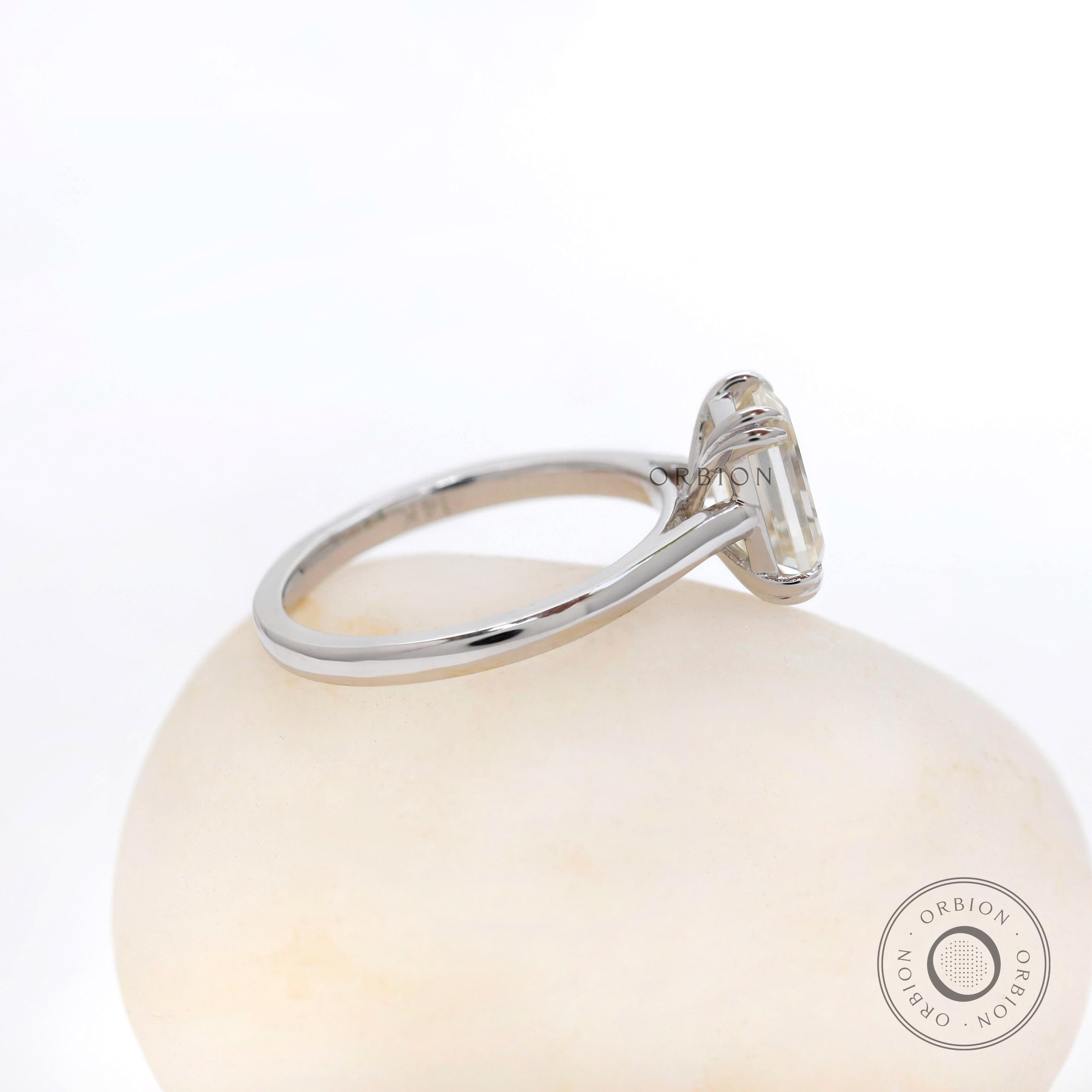 Asscher Cut Solitaire Engagement Ring, Asscher Cut Moissanite Ring, 14K White Gold Solitaire Ring, Double Claw Prong, Cathedral Rings