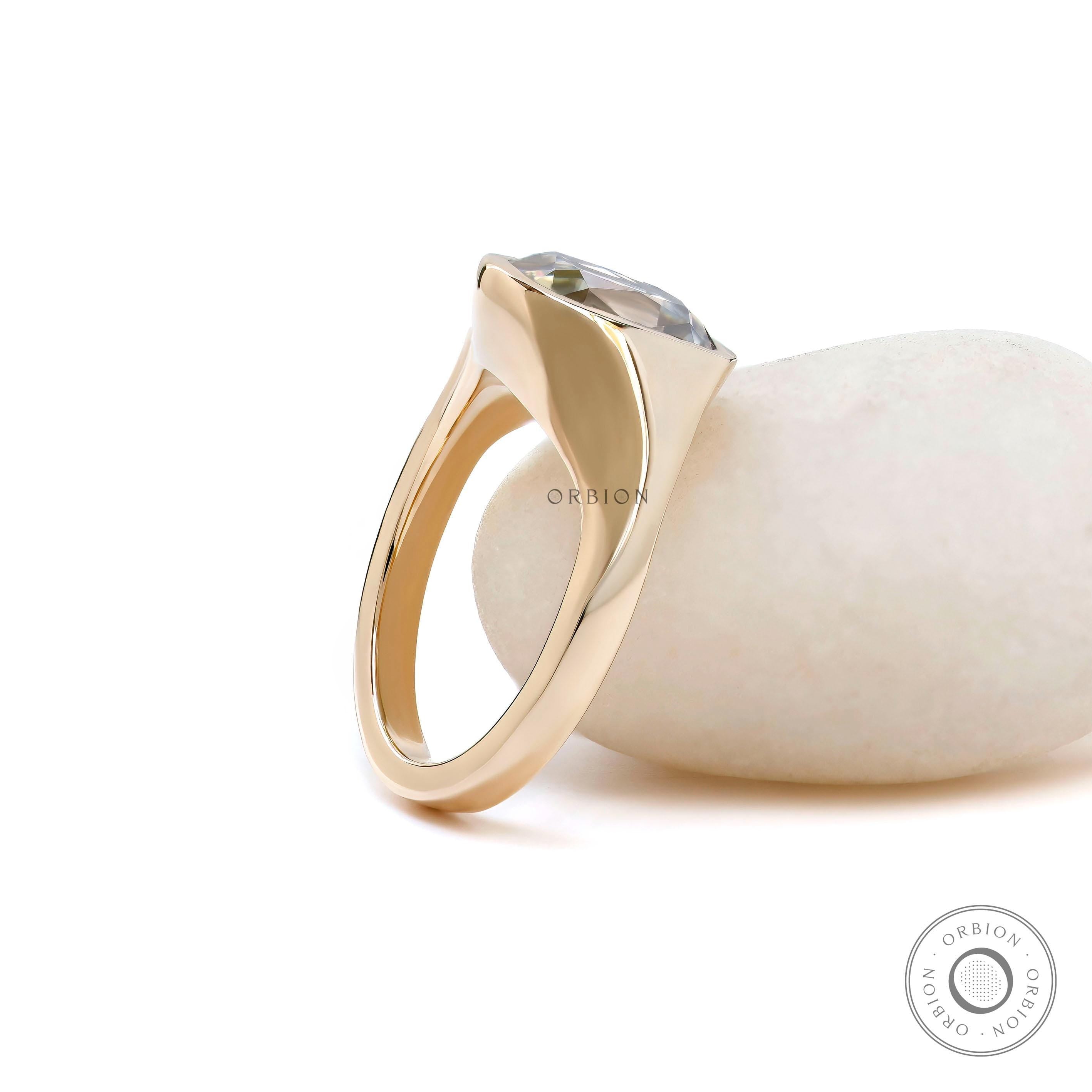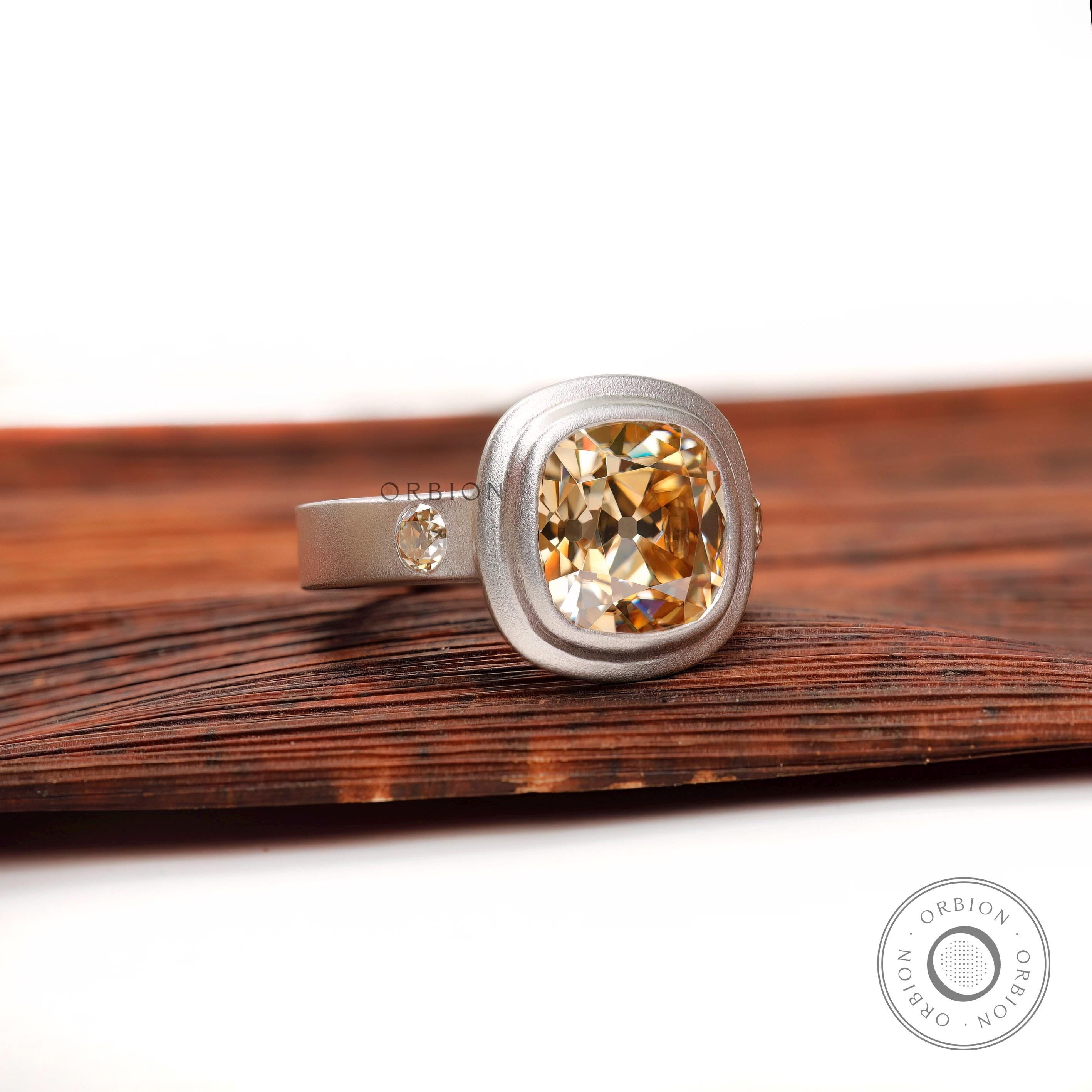Modern Chunky Statement Ring With Thick Tapered Band, Champagne Bezel Set Ring, Old Mine Cut Champagne Moissanite Ring, Euro Shank Band Ring