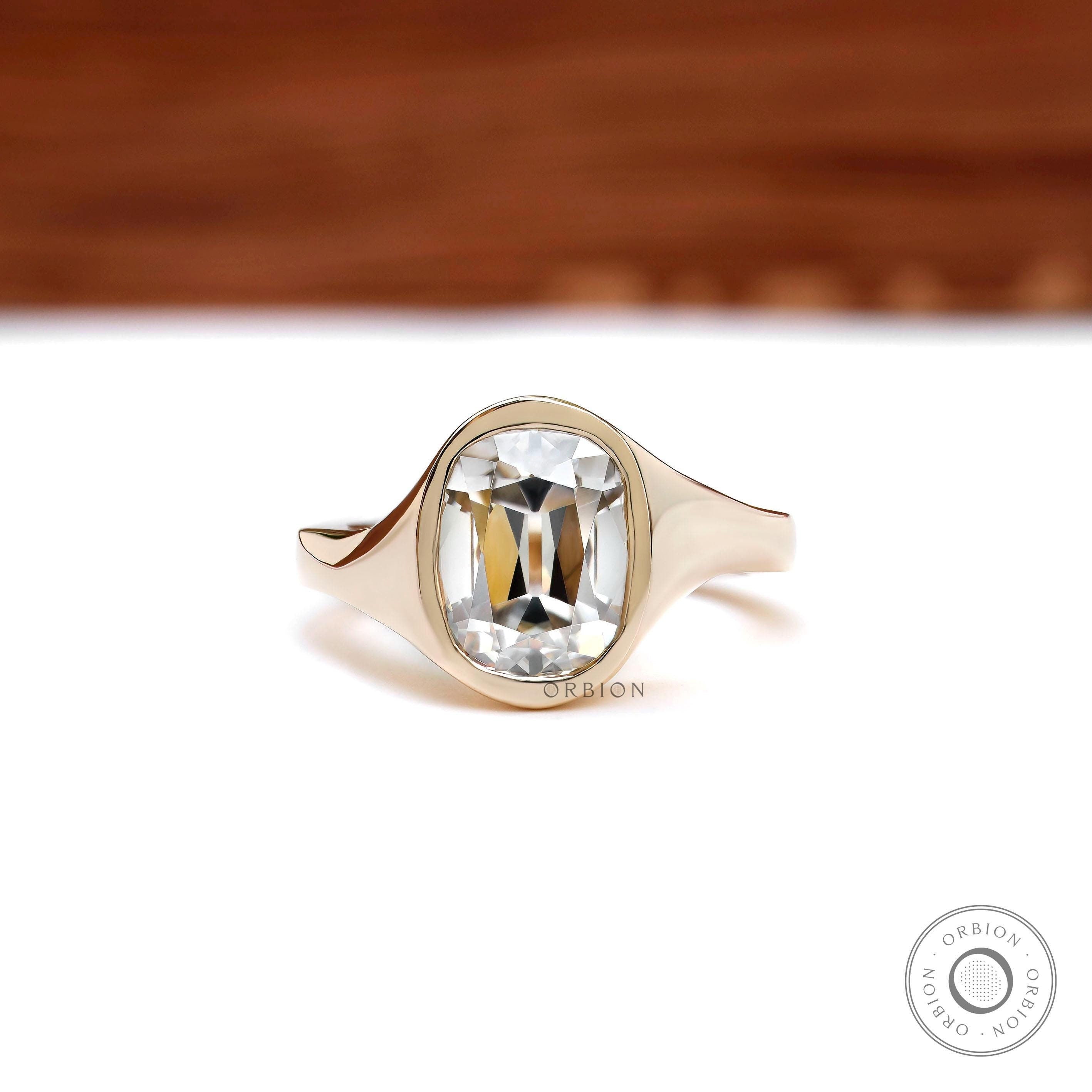 Unique Bezel Set White Moissanite Ring for a Modern Bride, Dazzling Chunky Statement Ring with a Twist of Elegance, Bold Old Mine Cut Ring