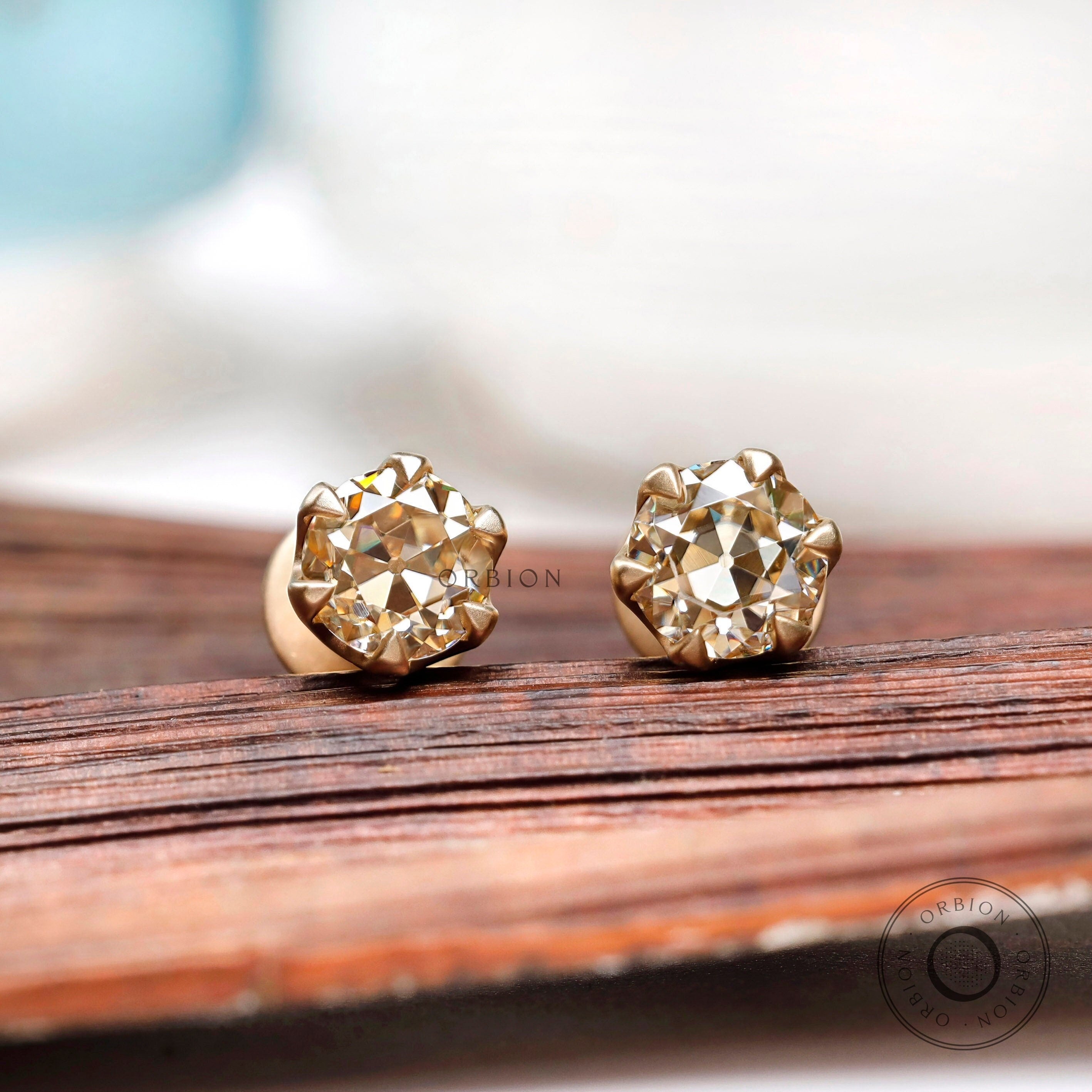 Champagne Moissanite Earrings, Old European Cut Moissanite Earrings, Screw Back Earrings, Matte Gold Earrings, Vintage Earrings Matte Gold