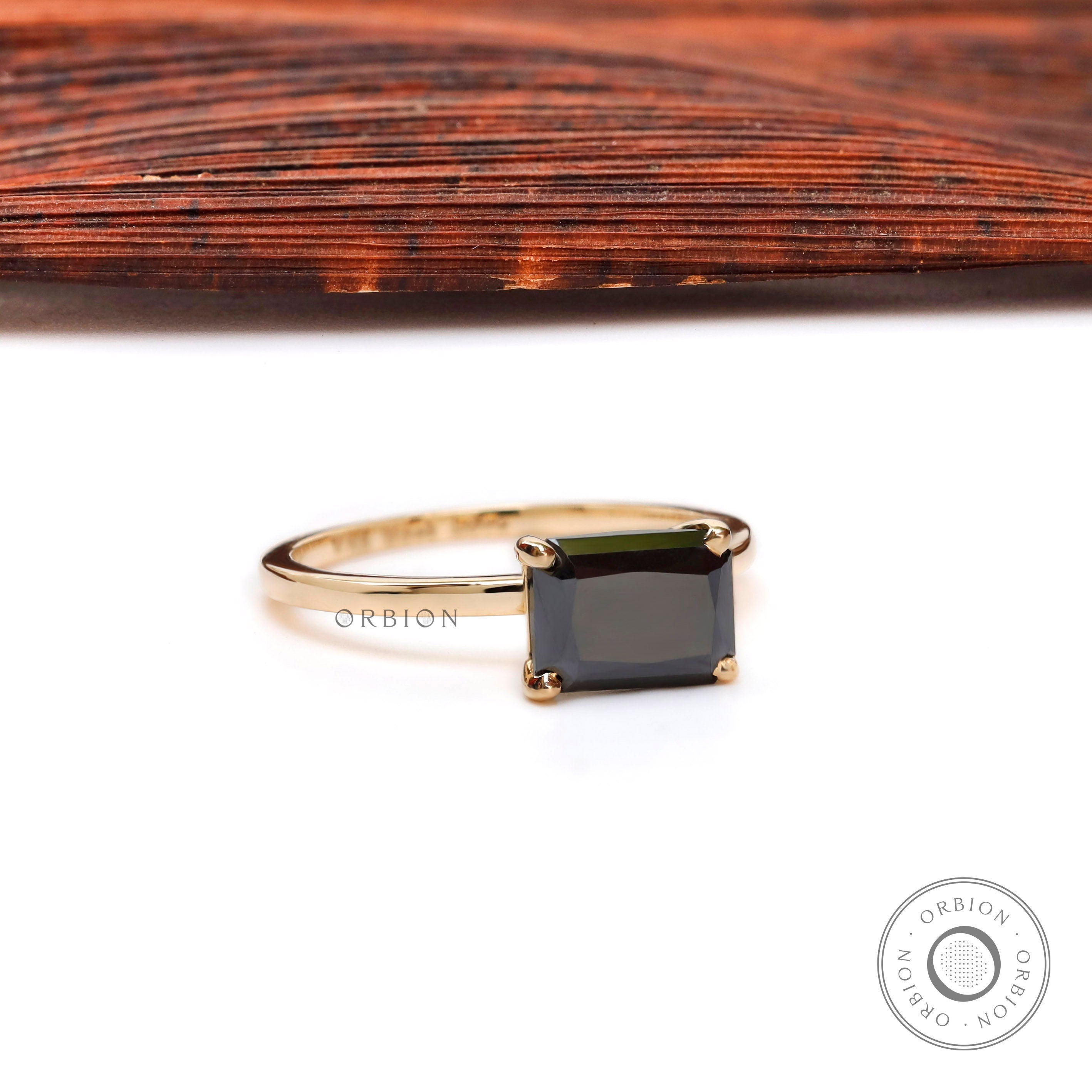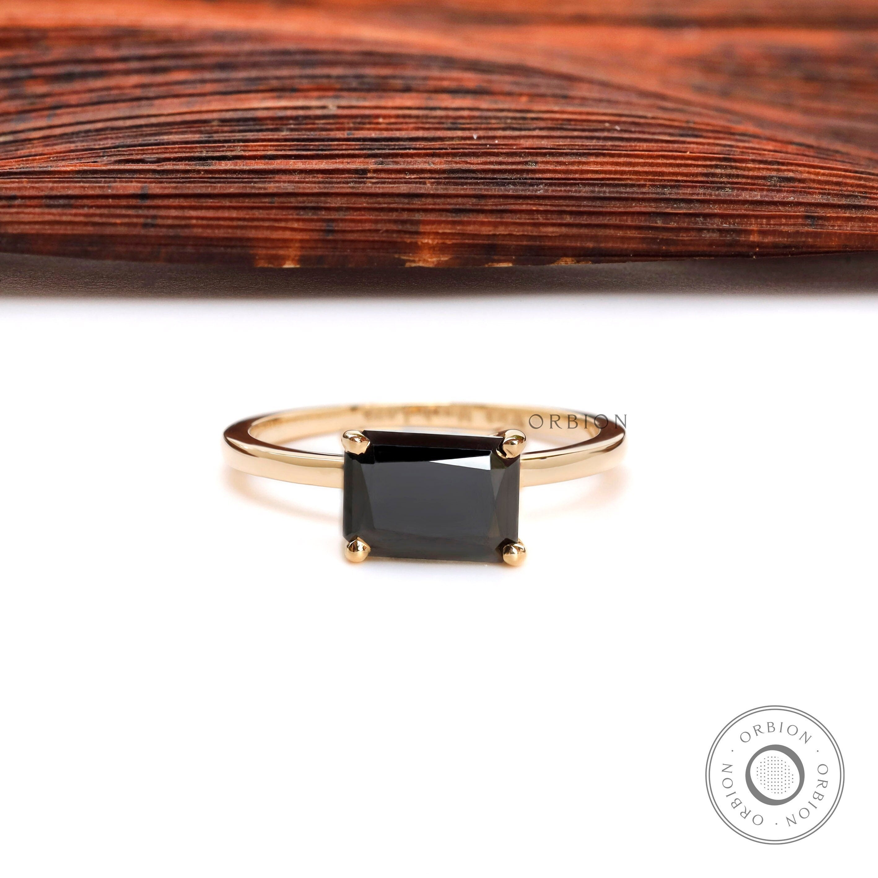 Radiant Cut Moissanite Ring, Black Moissanite Ring, East West Set Ring, Martini Basket Set Ring, Single Stone Ring, Unique Promise Ring