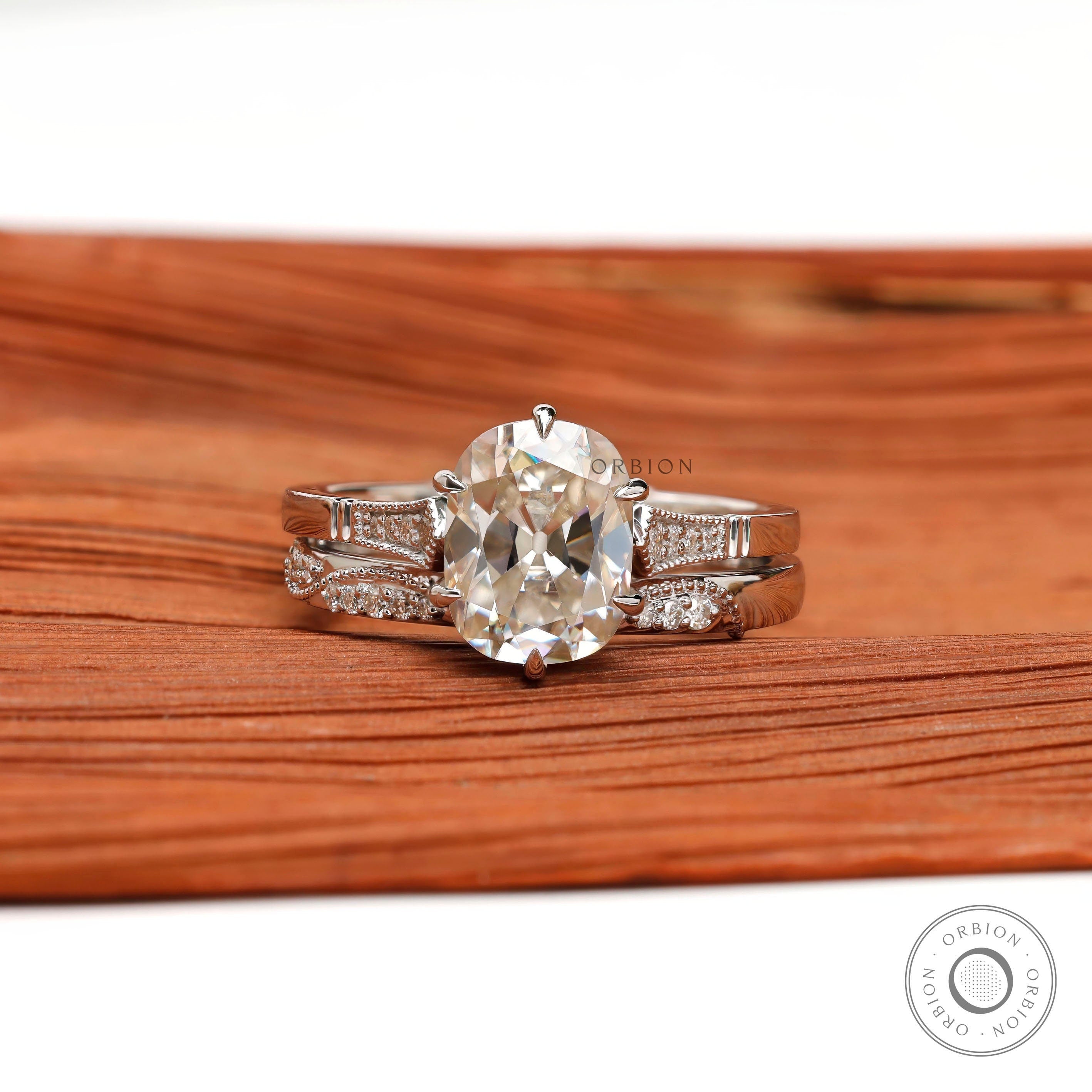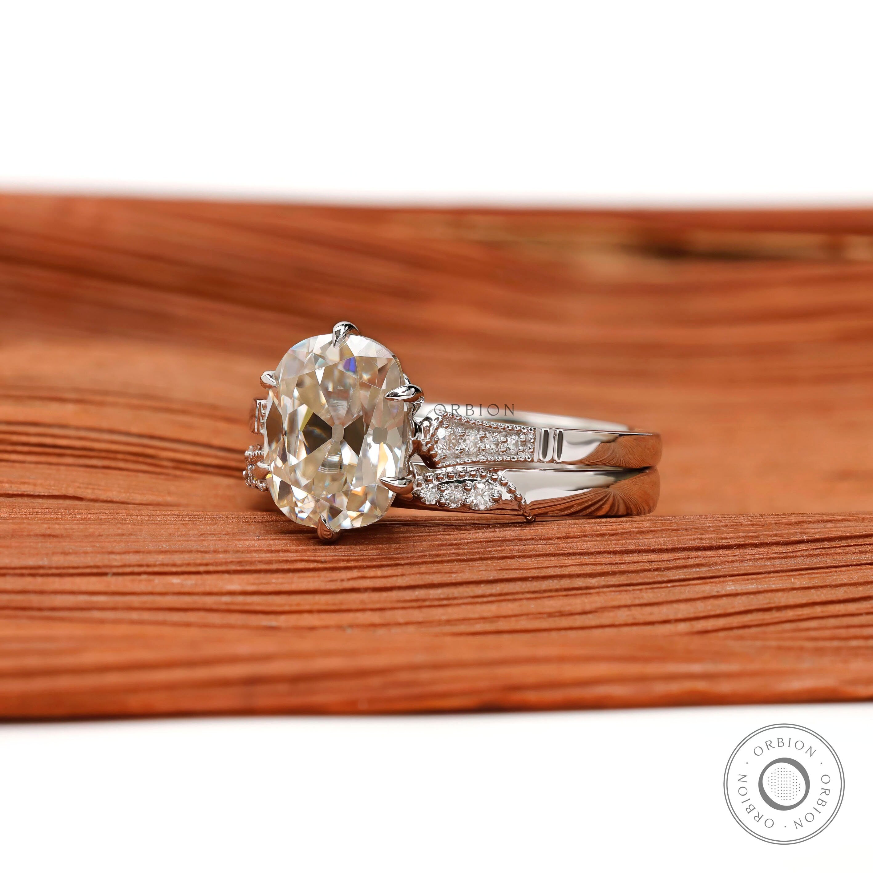 Oval Moissanite Curved Ring Set, 10K White Gold Ring with Stacking Wedding band, Wedding Ring Set, Bridal Ring Set