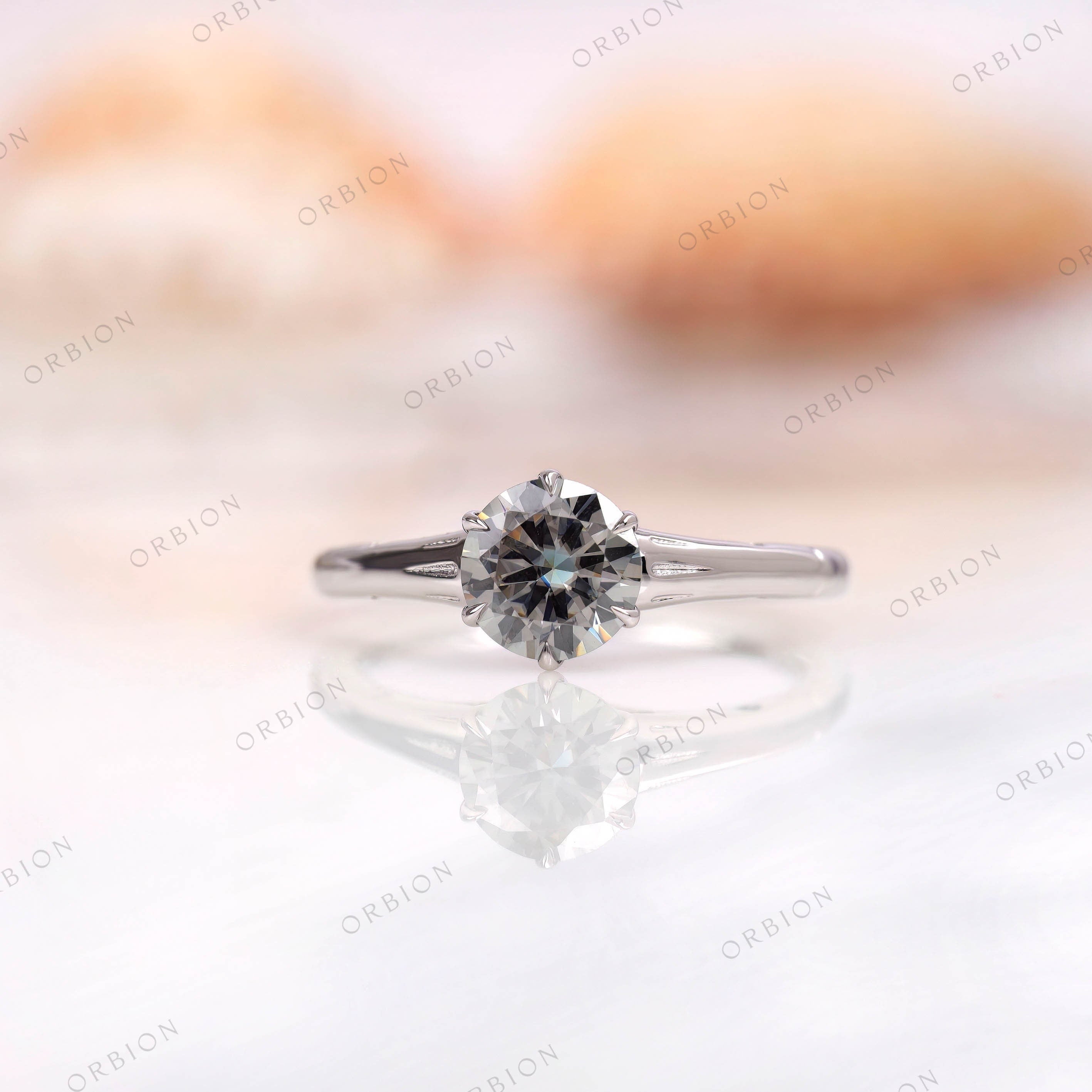 Grey Moissanite Engagement Ring, Grey Stone Ring, 6 Prong Ring, Georgian Ring, Cathedral Rings, 10k/14k/18K White Gold Ring, Grey Rings