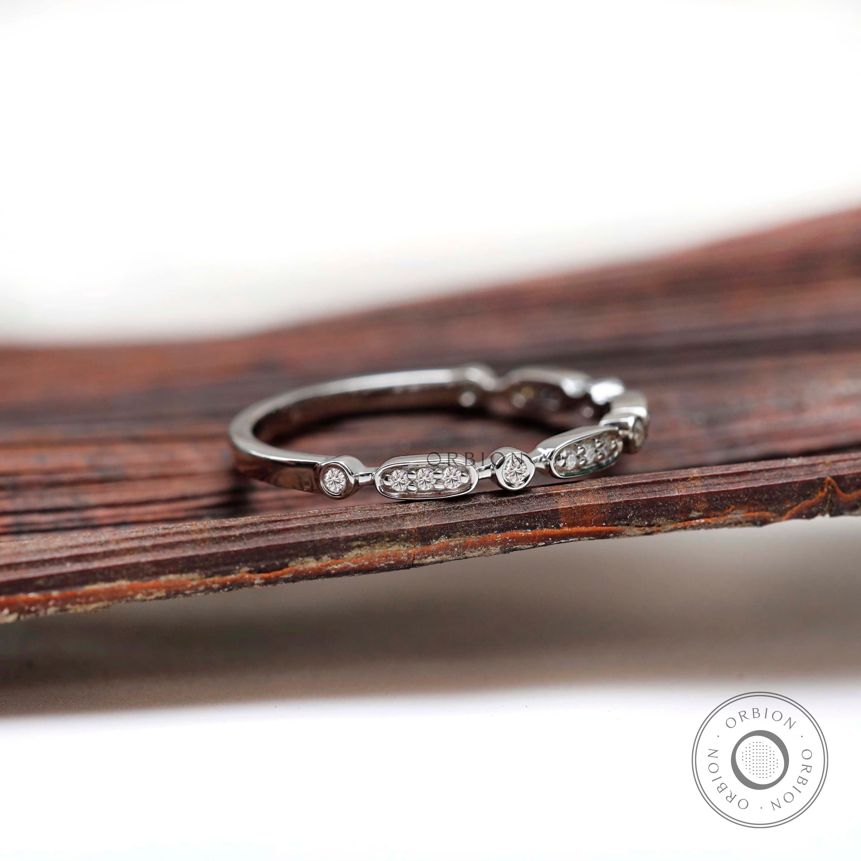 Milgrain Art Deco Wedding Band For Women, Half Eternity Vintage Diamond Band, Dainty Minimalist Band Ring, Anniversary Band For Her