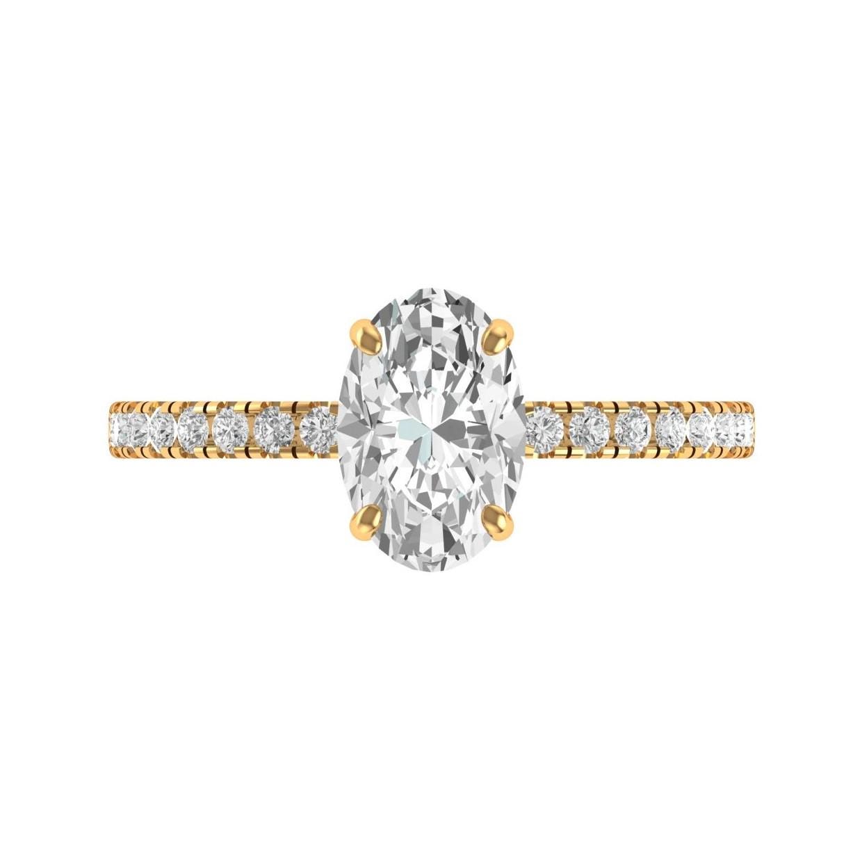 Oval Brilliant Cut Moissanite Engagement Ring, Half Eternity Wedding Band For Women, Oval Solitaire Promise Ring, 14K Solid Yellow Gold Ring