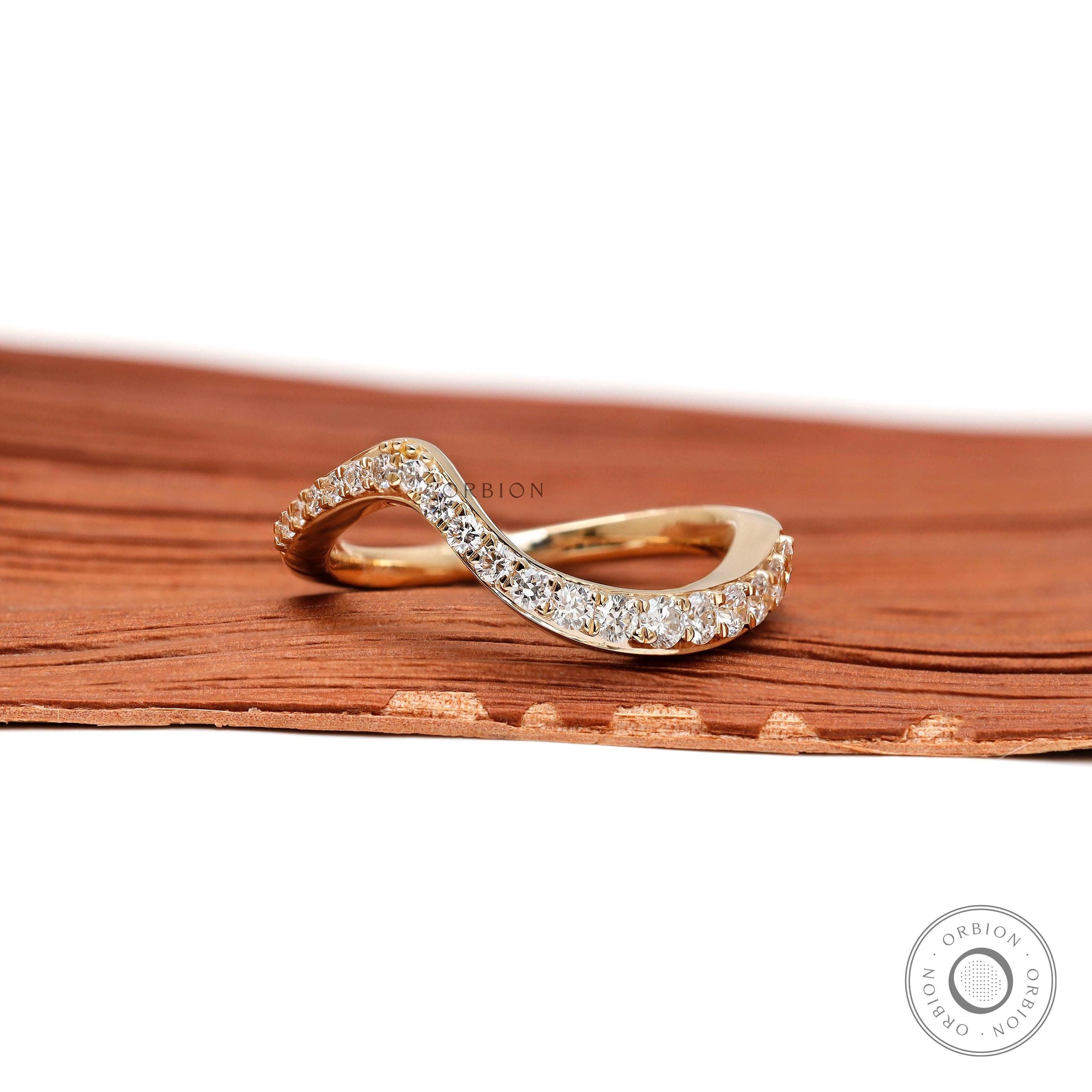 Curved Diamond Band, Curved Wedding Band, Round Lab Diamond / Moissanite Wedding Band, Half Eternity Band For Women, Chunky Wave Ring