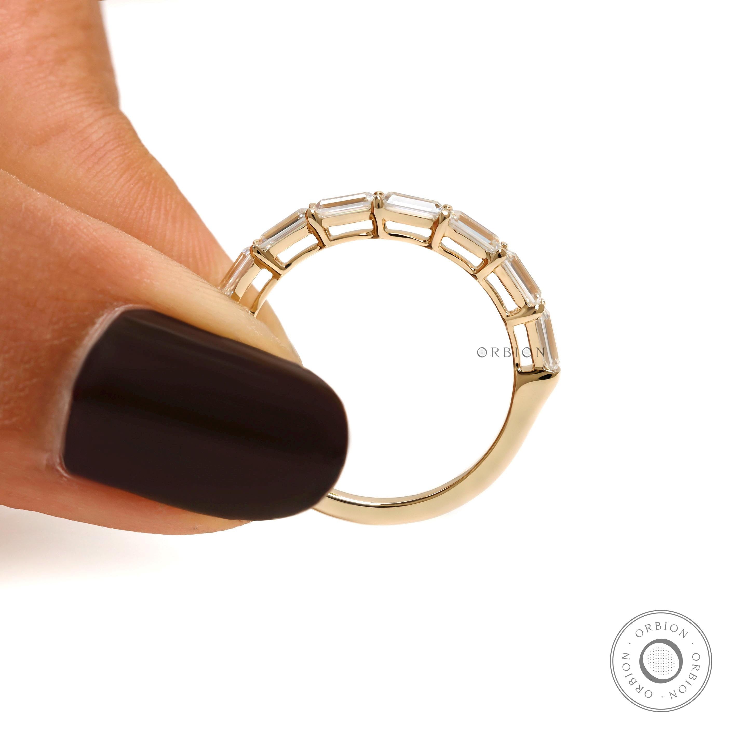 Emerald Cut Moissanite/Lab Diamond Half Eternity Band, Shared Prong Diamond Band, East West Emerald Cut Band, Dainty Stacking Band Gold