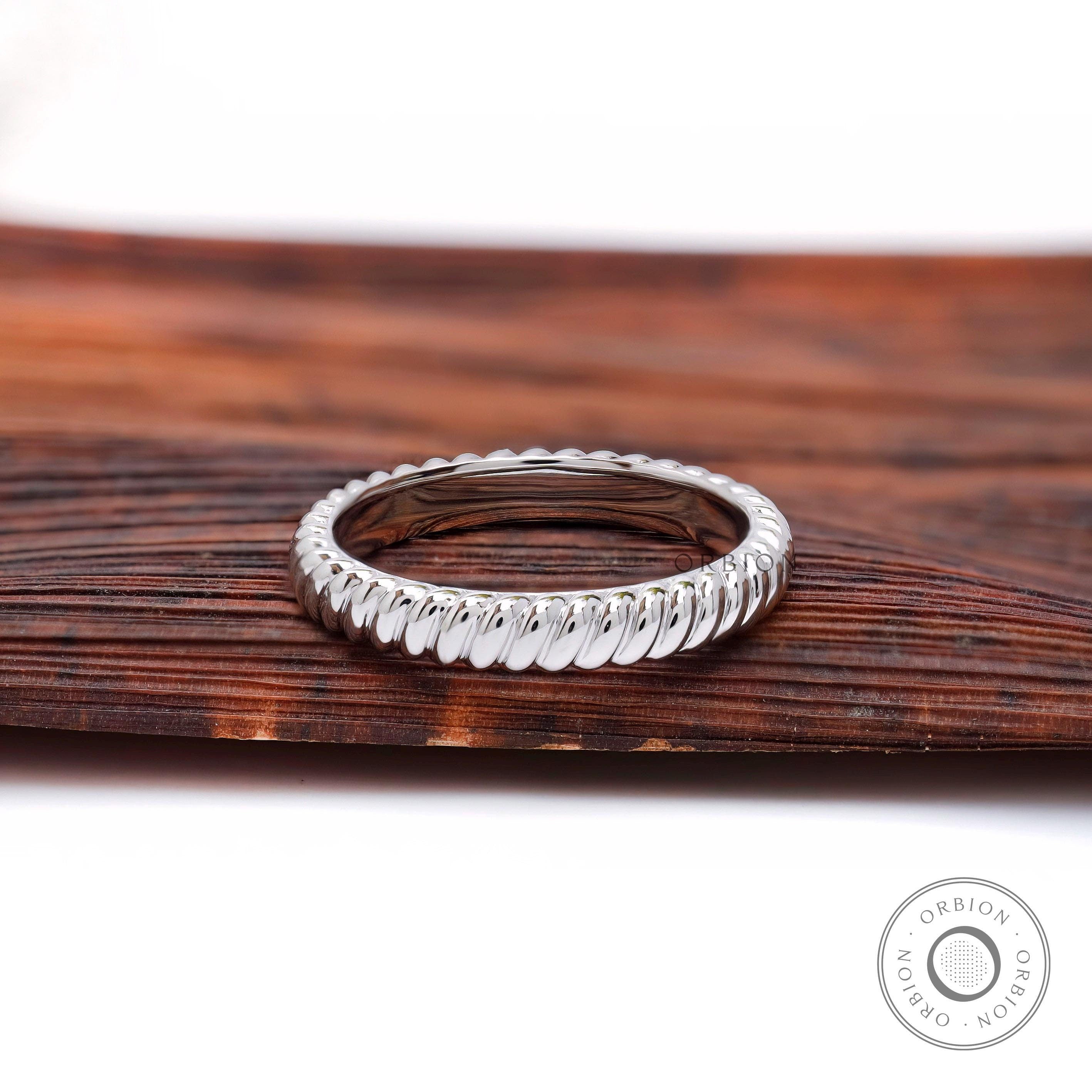 Rope Band Ring, White Gold Rope Ring, Full Eternity Band, Stacking Band, Stacking Gift Ring, Plain Gold Band, Unique Band Ring, 3 MM Band