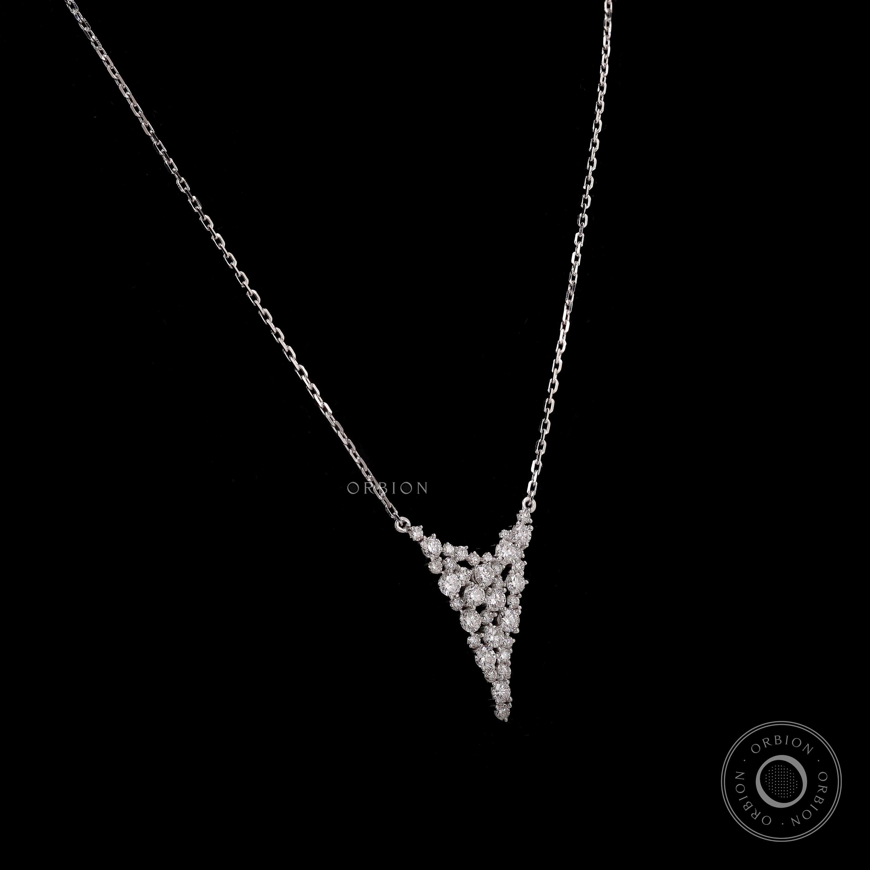 Contemporary Diamond Cluster Exclusive Necklace, Unique Falling Sparkling Nectar Pendant, Lab Grown Diamond Waterfall Statement Necklace