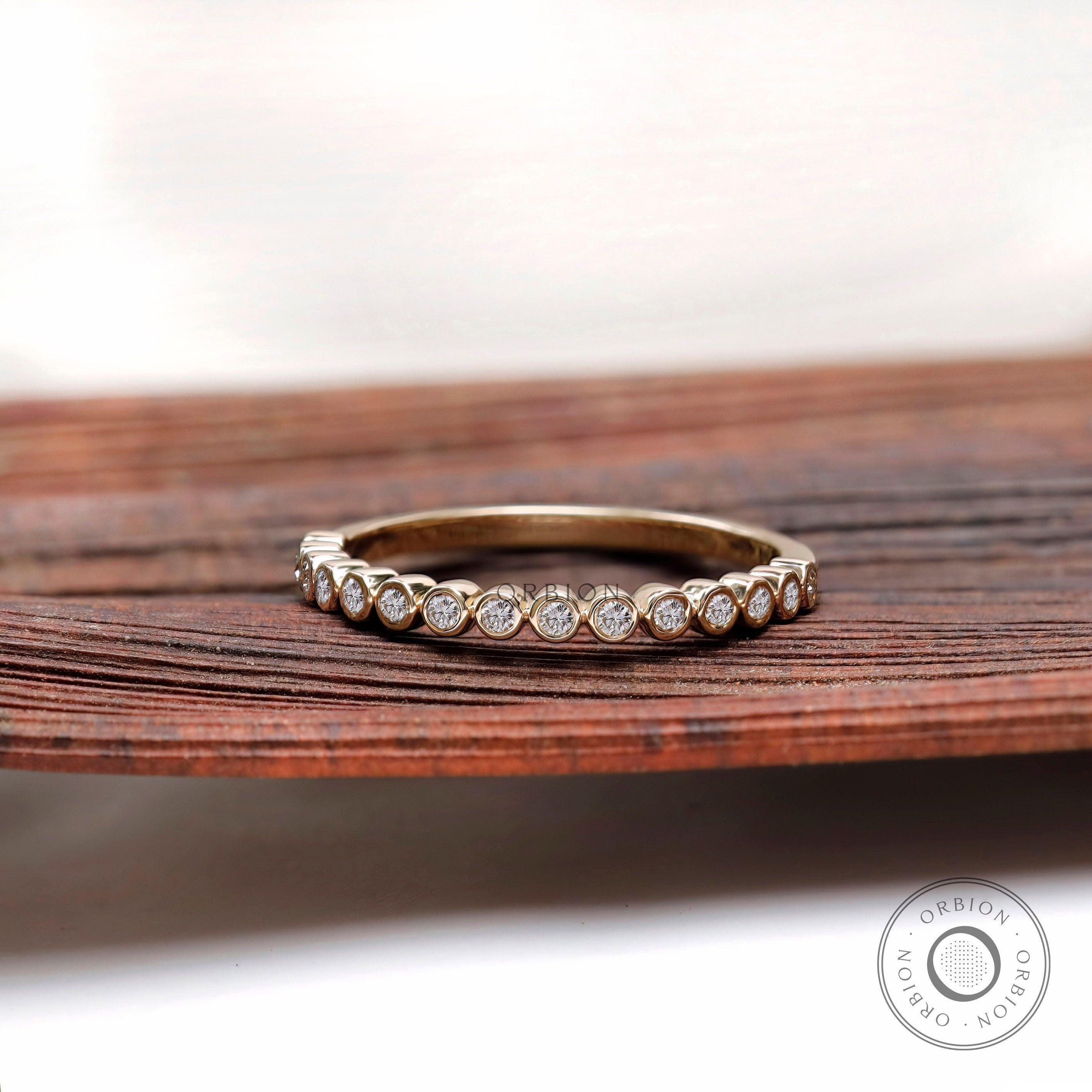 Half Eternity Moissanite Band, Art Deco Stacking Ring, 14k Gold Milgrain Wedding Band, Vintage Wedding Band, Bezel Band Ring, Dainty Ring