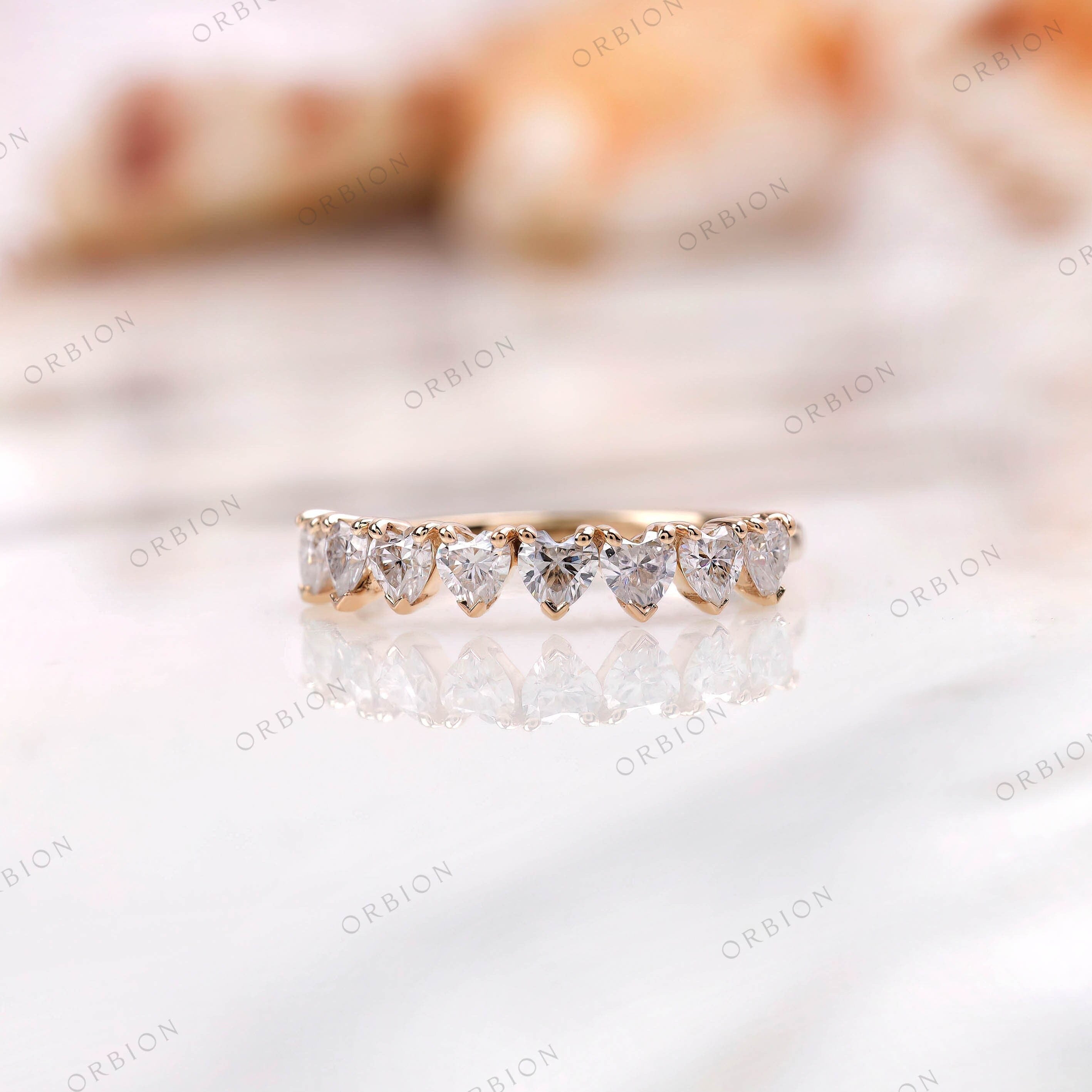 Colorless Heart Shape Moissanite Wedding Band, Half Eternity Stackable Band For Her, Dainty Diamond Band, Comfortable Band For Women