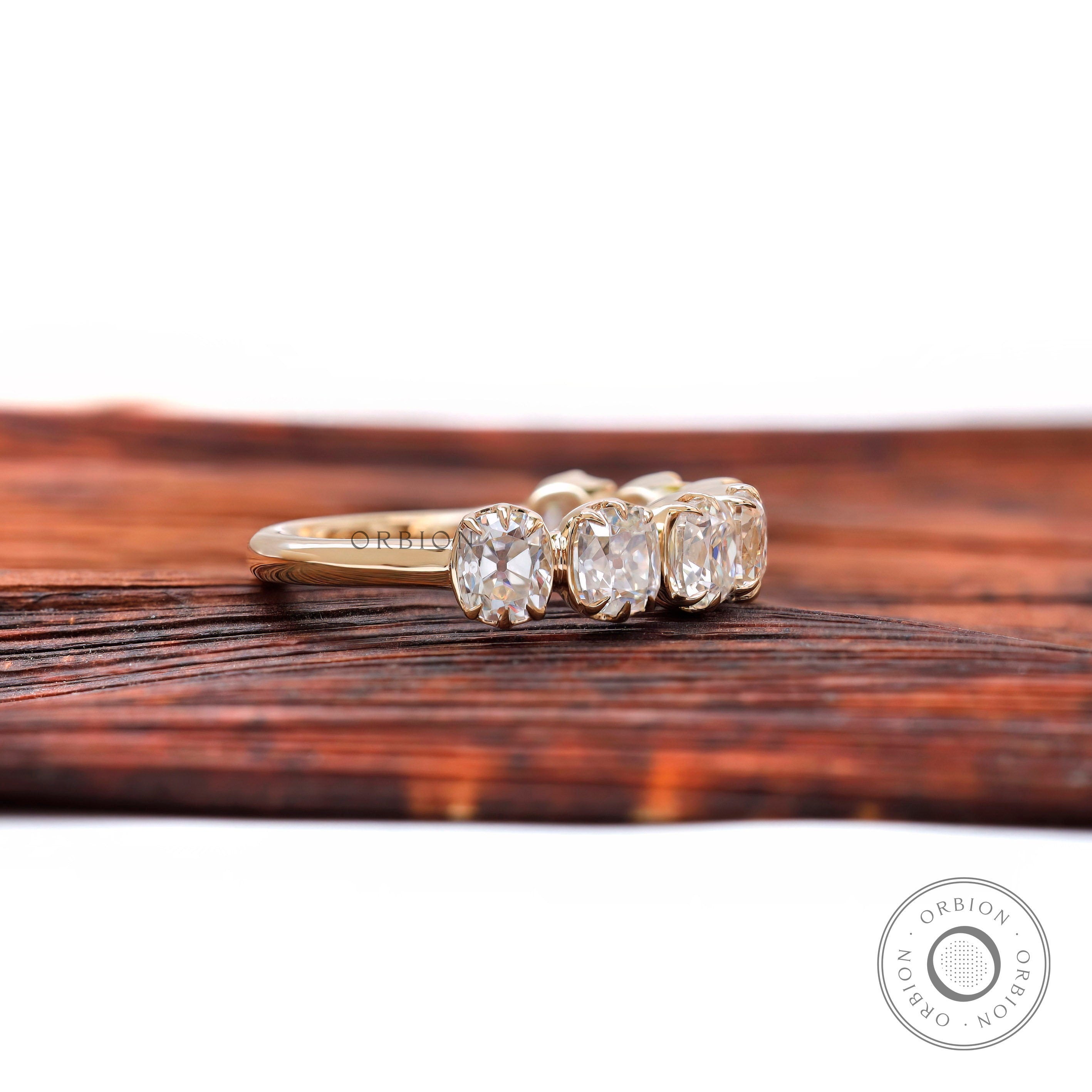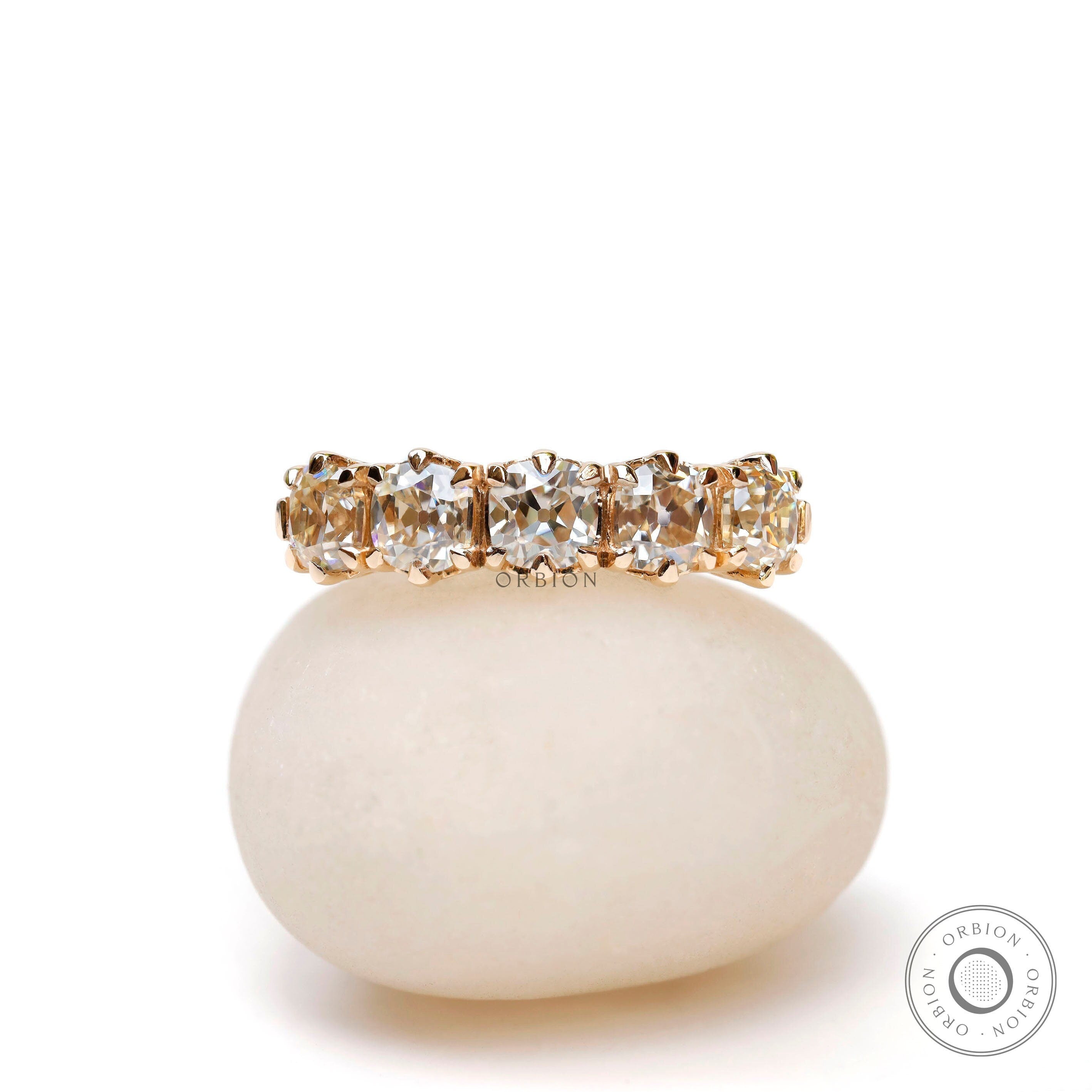 OMC Cushion Five Stone Moissanite Band, Vintage Wedding Band, Wedding Band Women, Yellow Gold Five Stone Ring, 5 Stone Old Mine Band