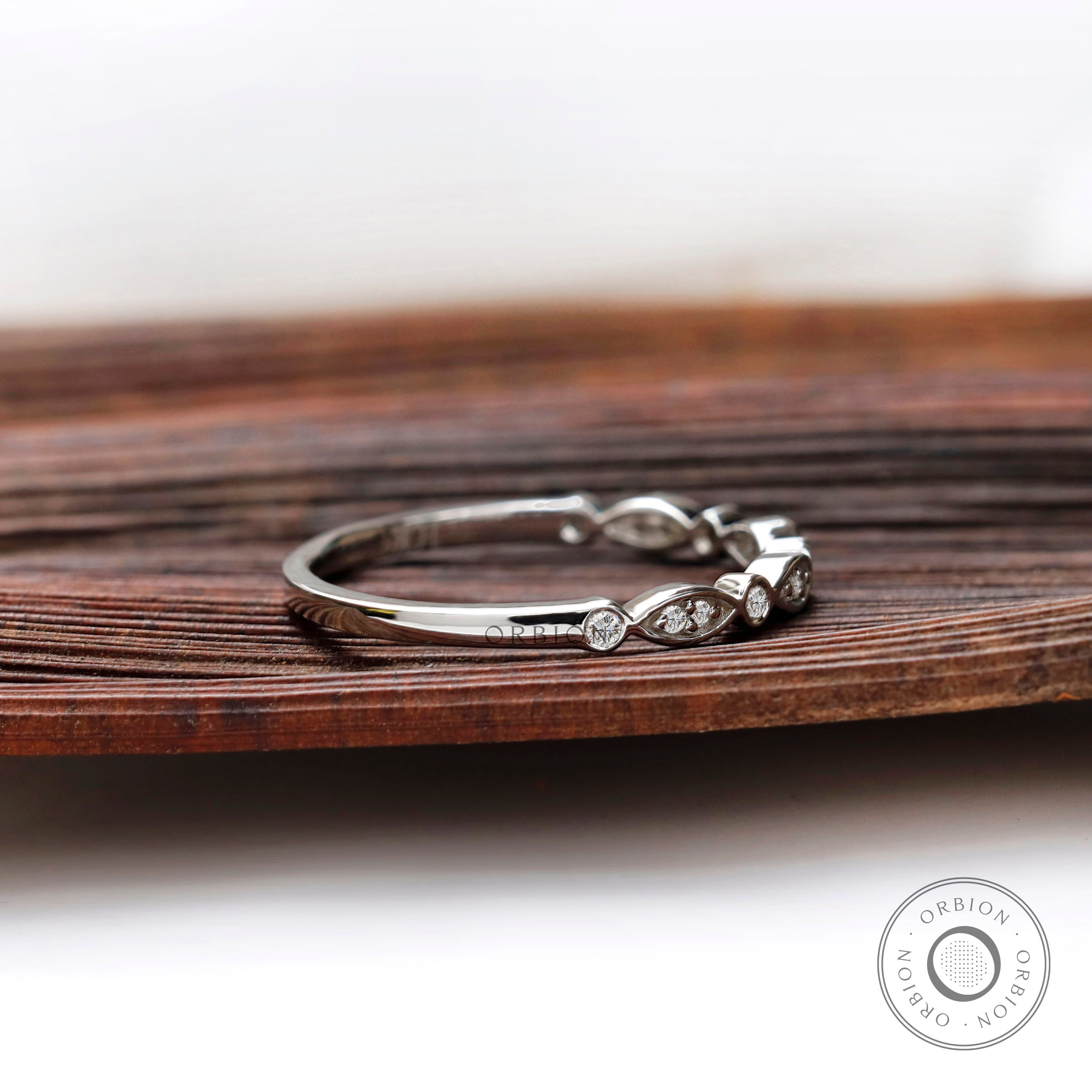 Vintage-inspired Marquise Moissanite Wedding Band in Elegant 14K Gold, Art Deco Milgrain Half Eternity Band