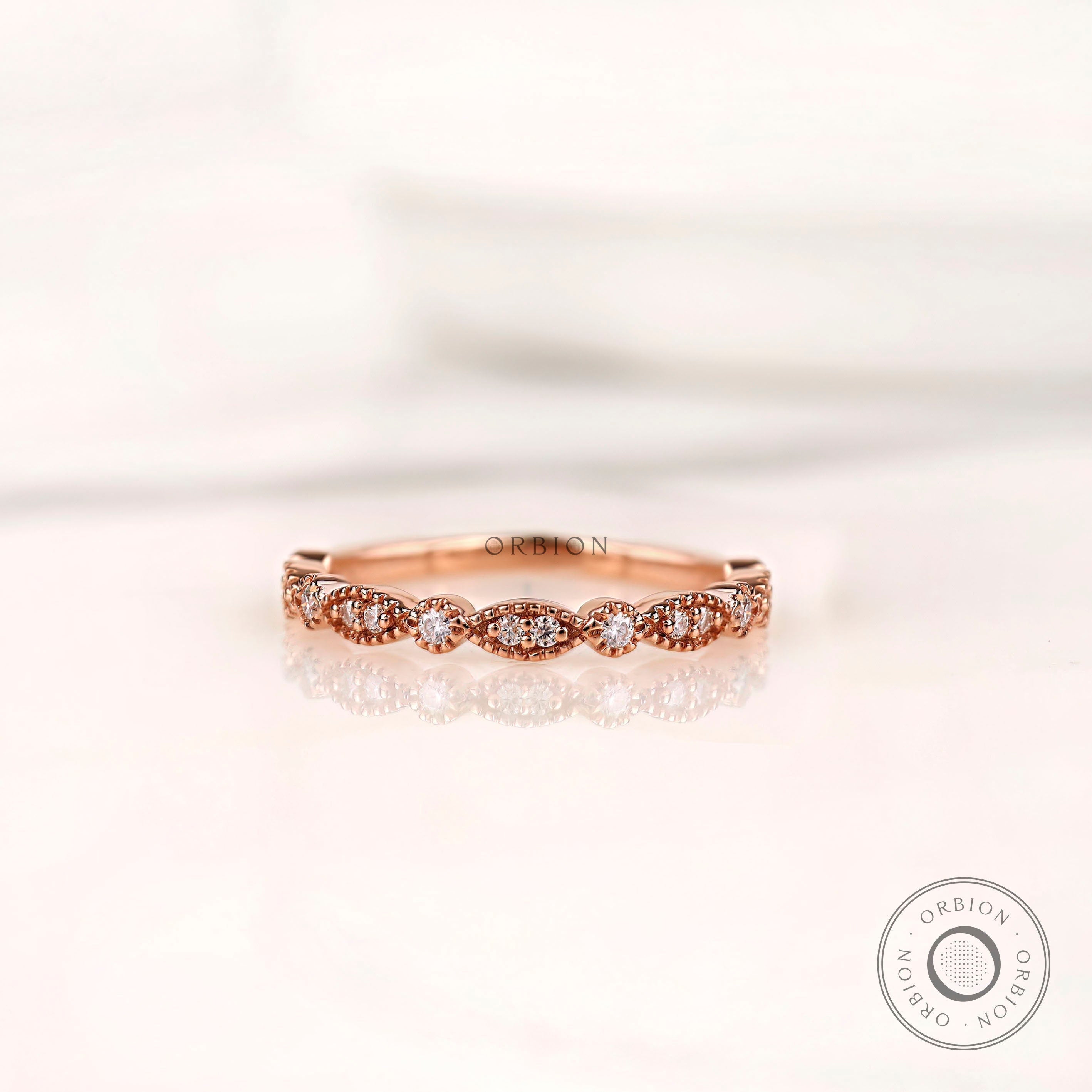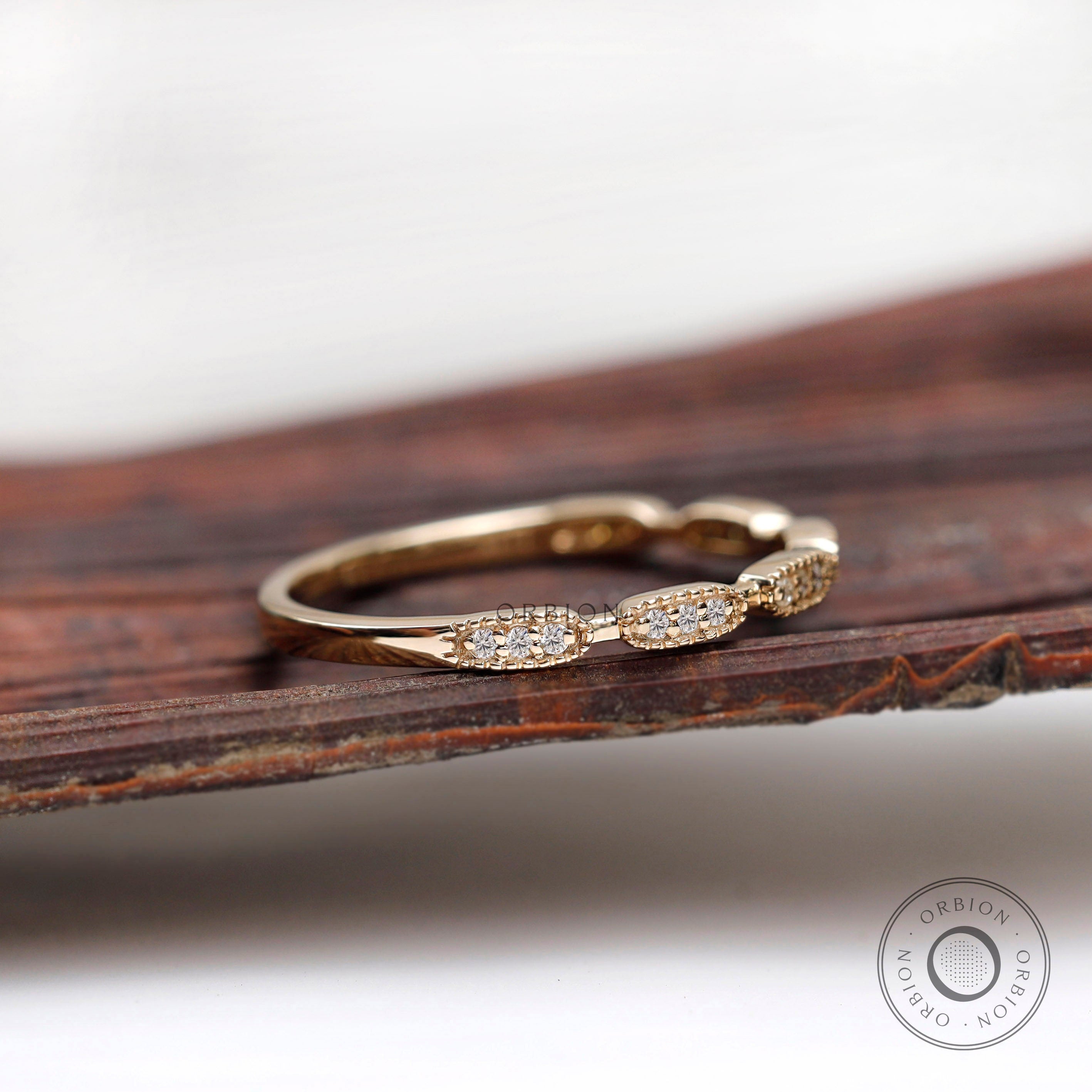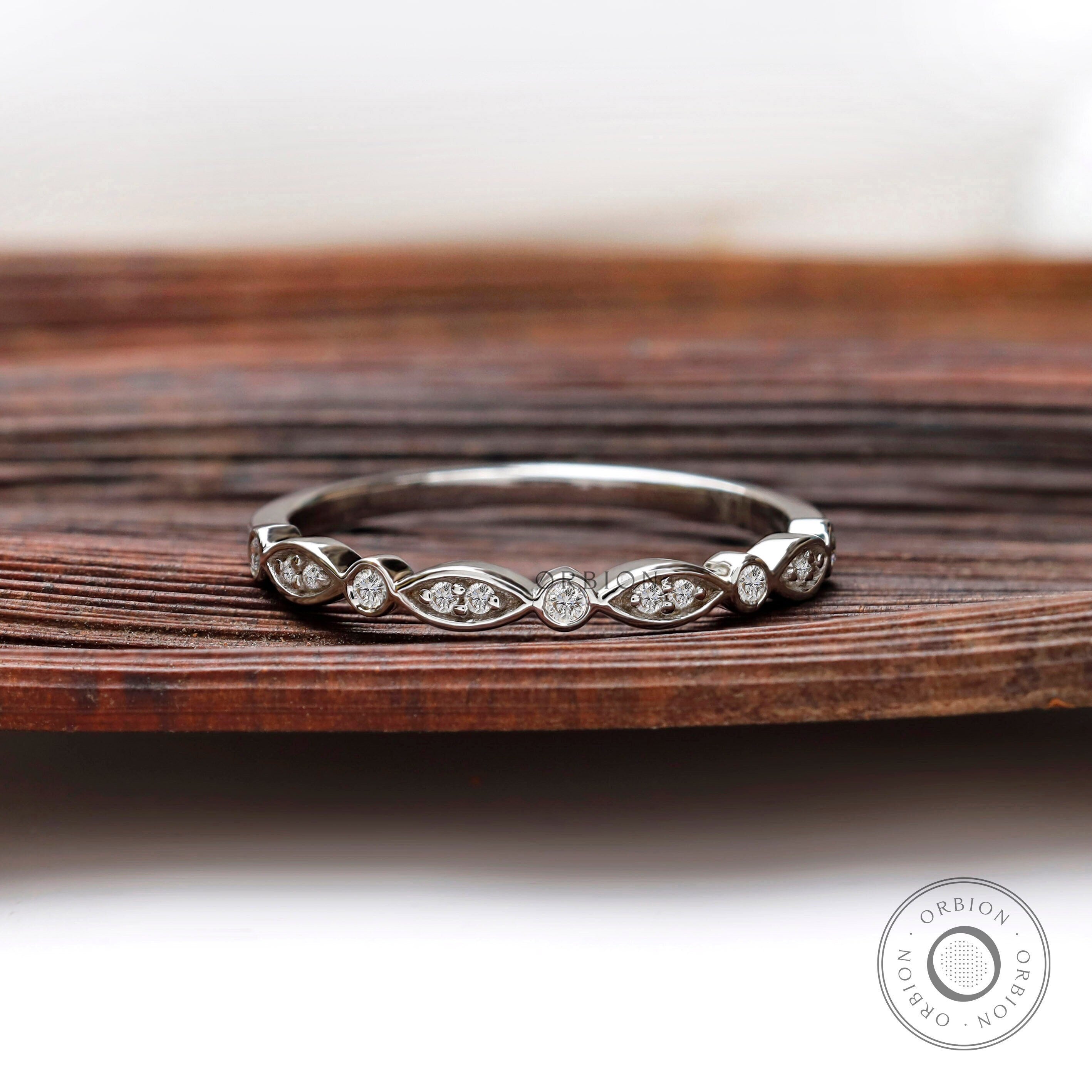 Milgrain Art Deco Wedding Band For Women, Half Eternity Vintage Diamond Band, Dainty Minimalist Band Ring, Anniversary Band For Her