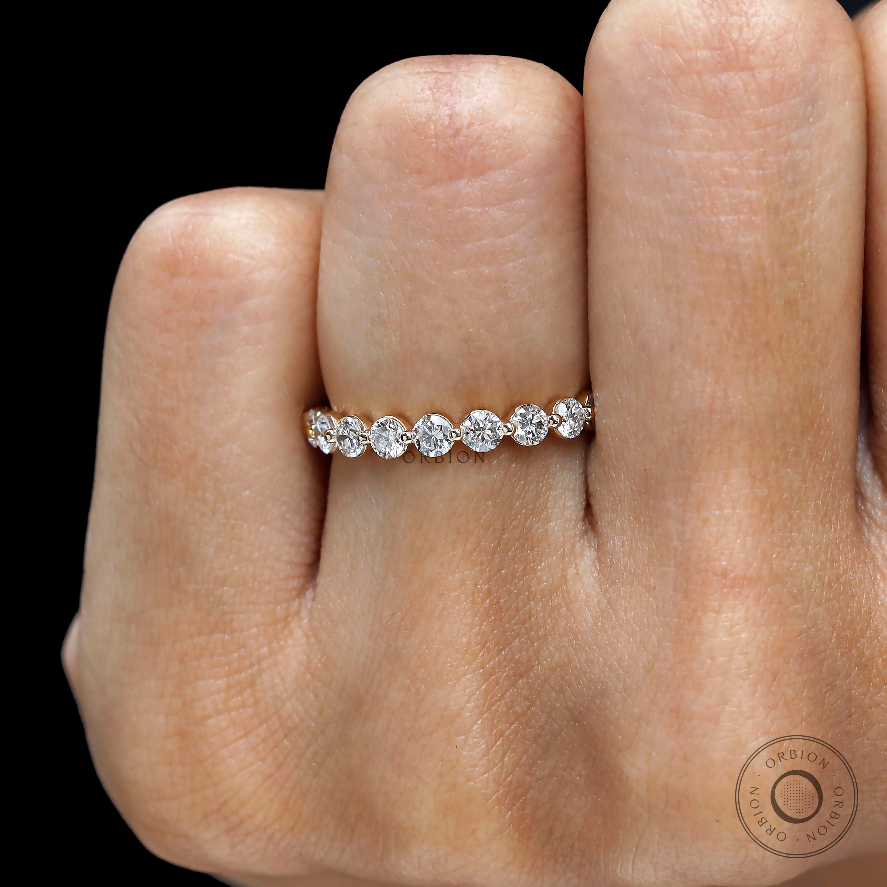 Floating Bubble Diamond Wedding Band, 1.3 MM Round Lab Grown Diamond Band, Half Eternity Band, Stackable/Matching Band, Minimalist Band