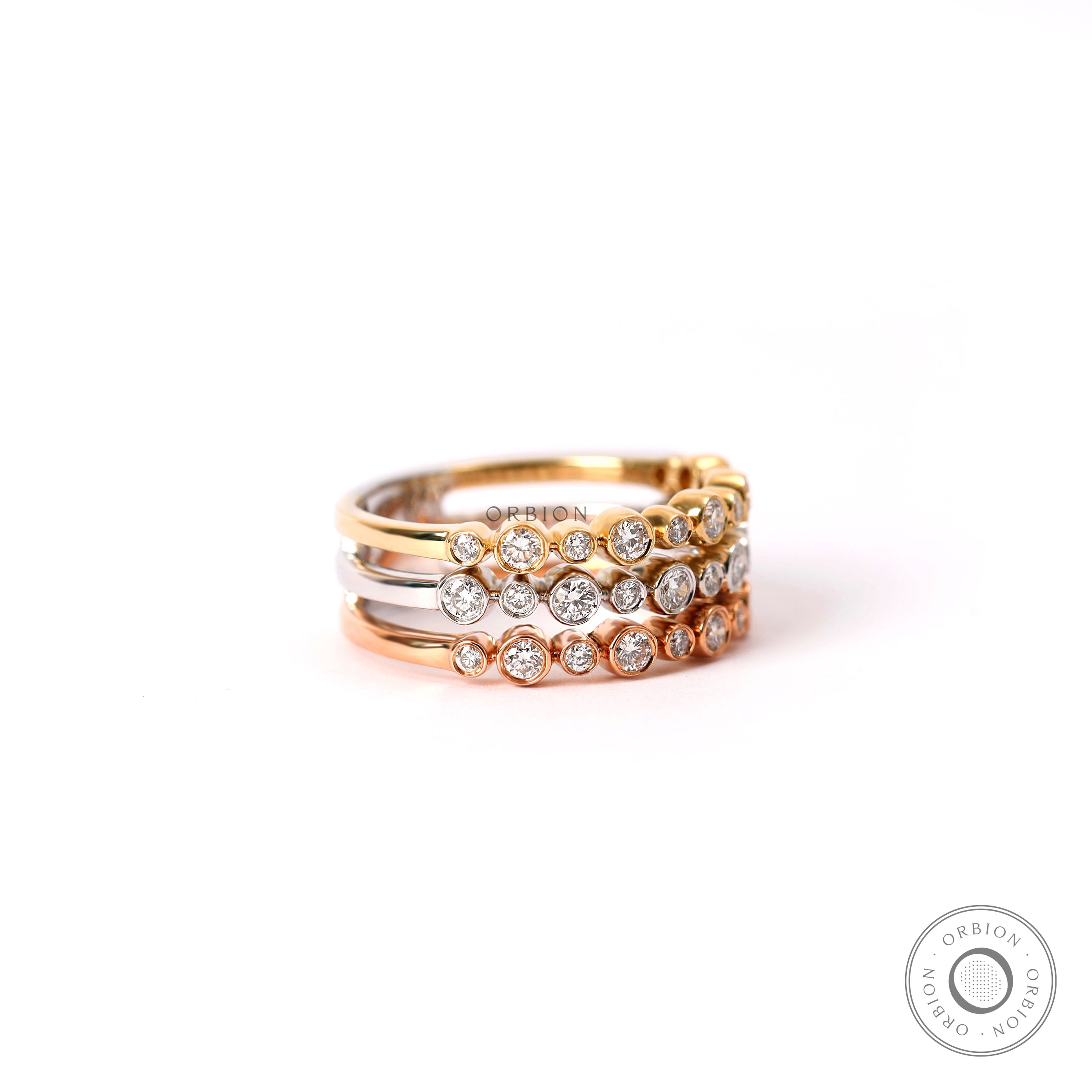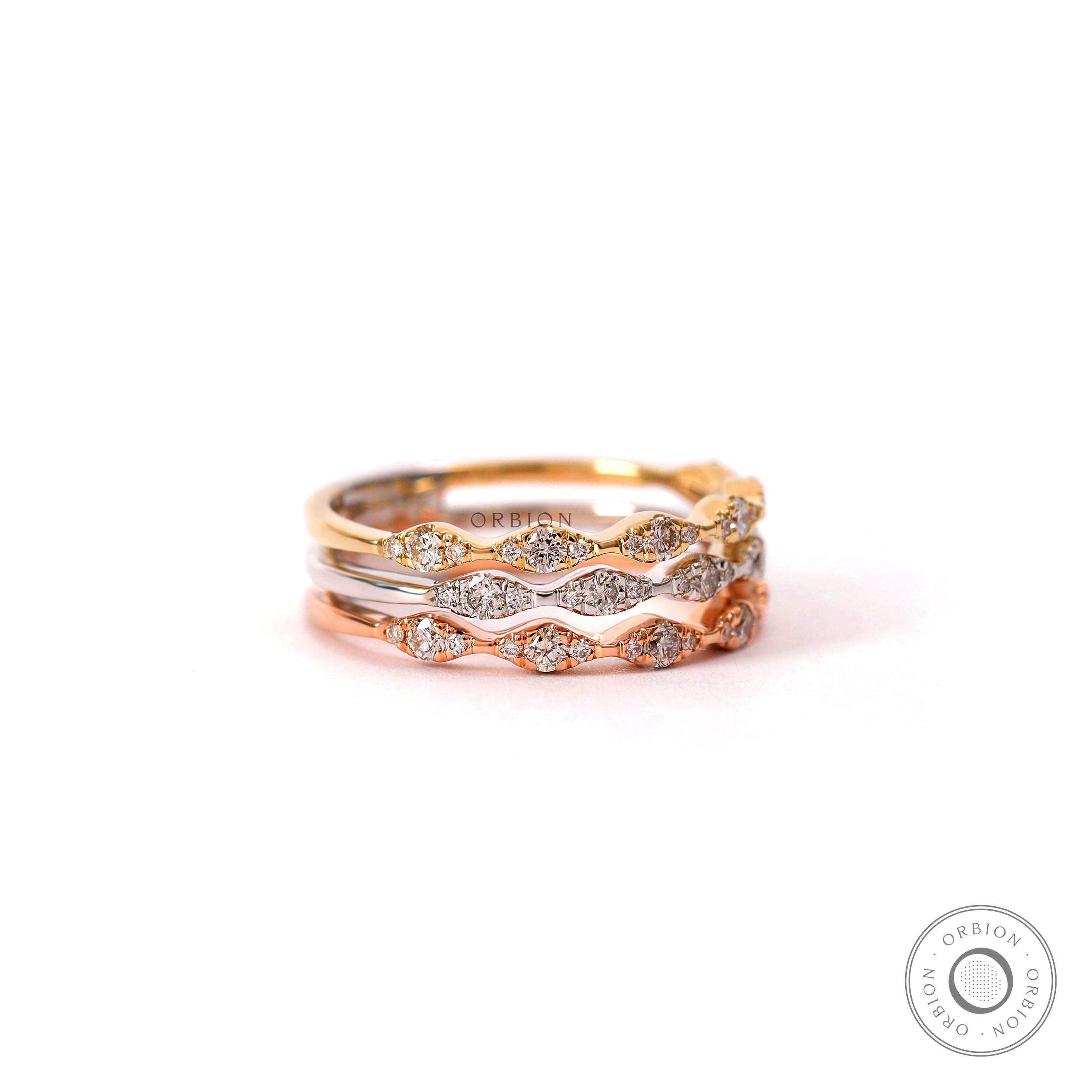 Scalloped Bezel Diamond Ring, Tri Color Band Ring, Bubble Diamond Eternity Ring, Three Tone Ring, Unique Anniversary Rings, Solid Gold Band