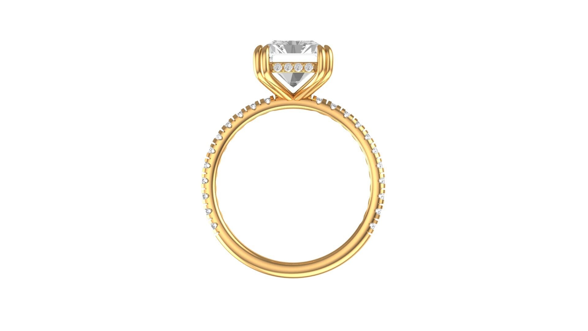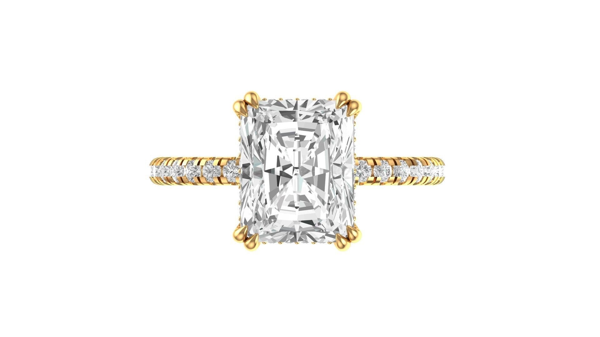 3.5 CT Brilliant Radiant Cut Moissanite Ring, 10K/14K/18K Yellow Gold Moissanite Pave Set Engagement Ring, Hidden Halo Ring, Wedding Ring