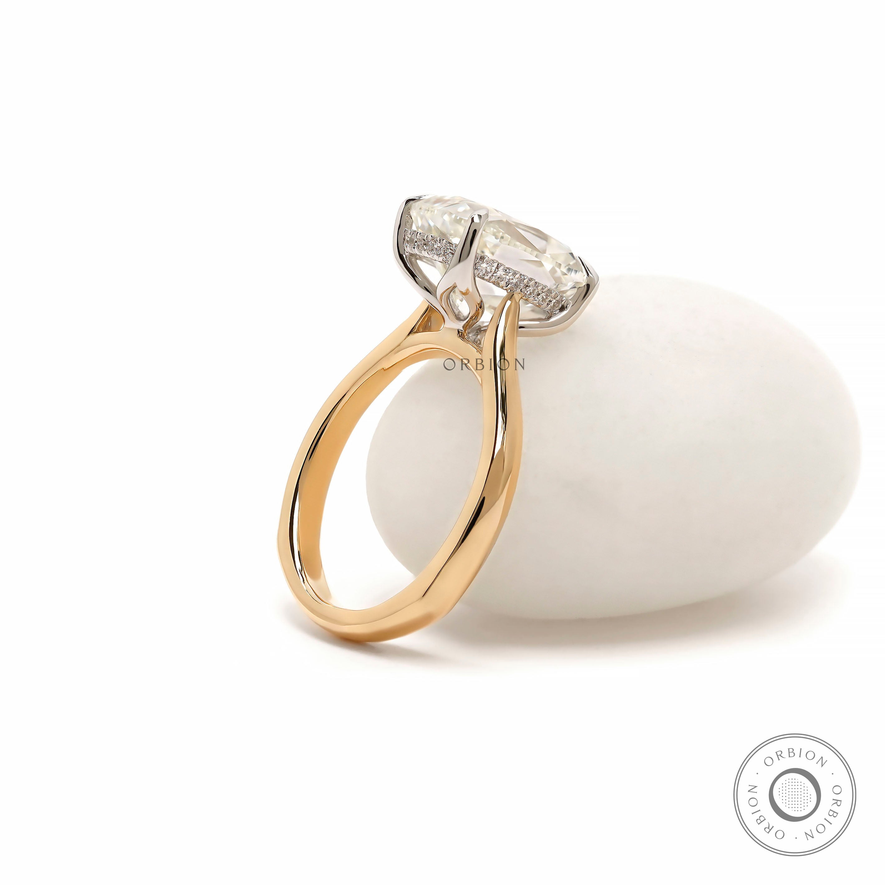 4 Ct OMC Elongated Cushion Lab Diamond/Moissanite Engagement Ring Antique Hidden Halo Cathedral Tulip Setting Euro Shank Two Tone Gold Ring