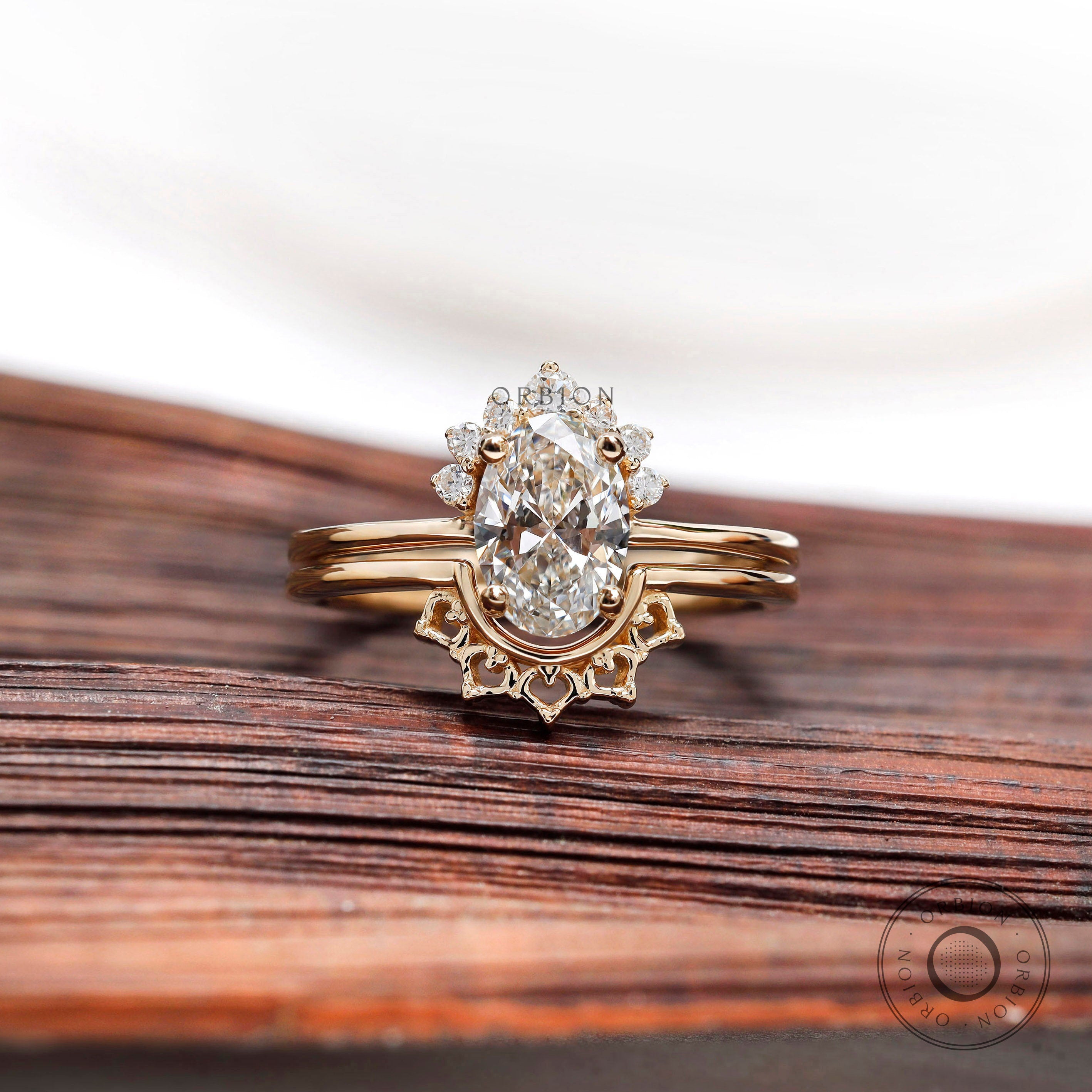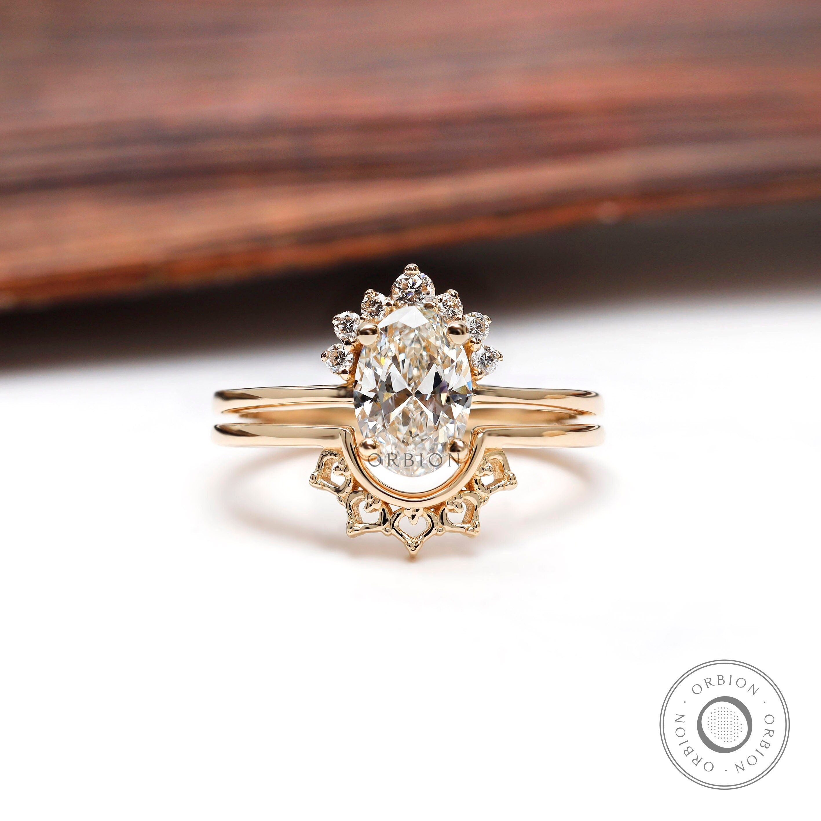 Oval Engagement Ring with Wedding Band, 1 carat Lab Grown Diamond, Hidden Halo Ring, Matching Half Eternity Band, Diamond Bridal Set for Her