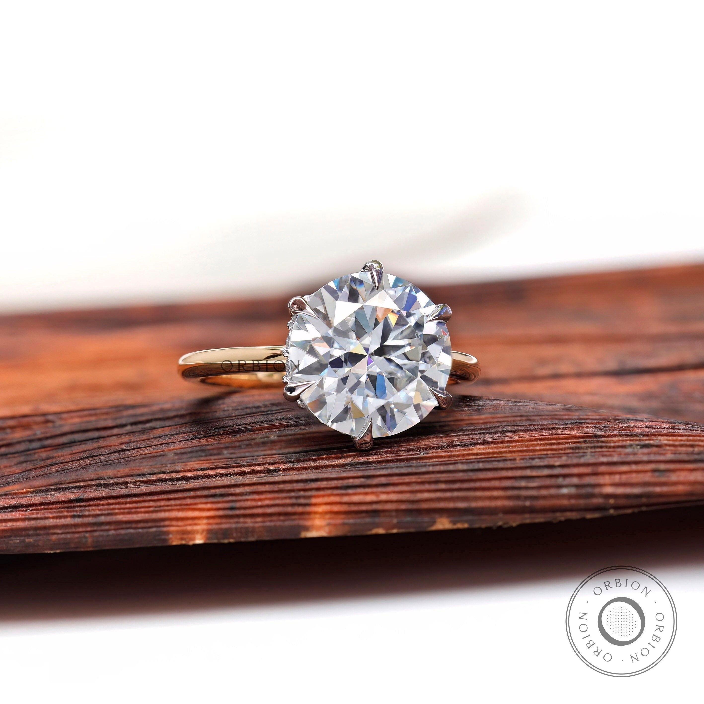 10 MM Brilliant Cut Round Moissanite Ring, Hidden Halo Engagement Ring, 14K Solid Gold Two Tone Ring, Large Stone Ring, Solitaire Ring Women