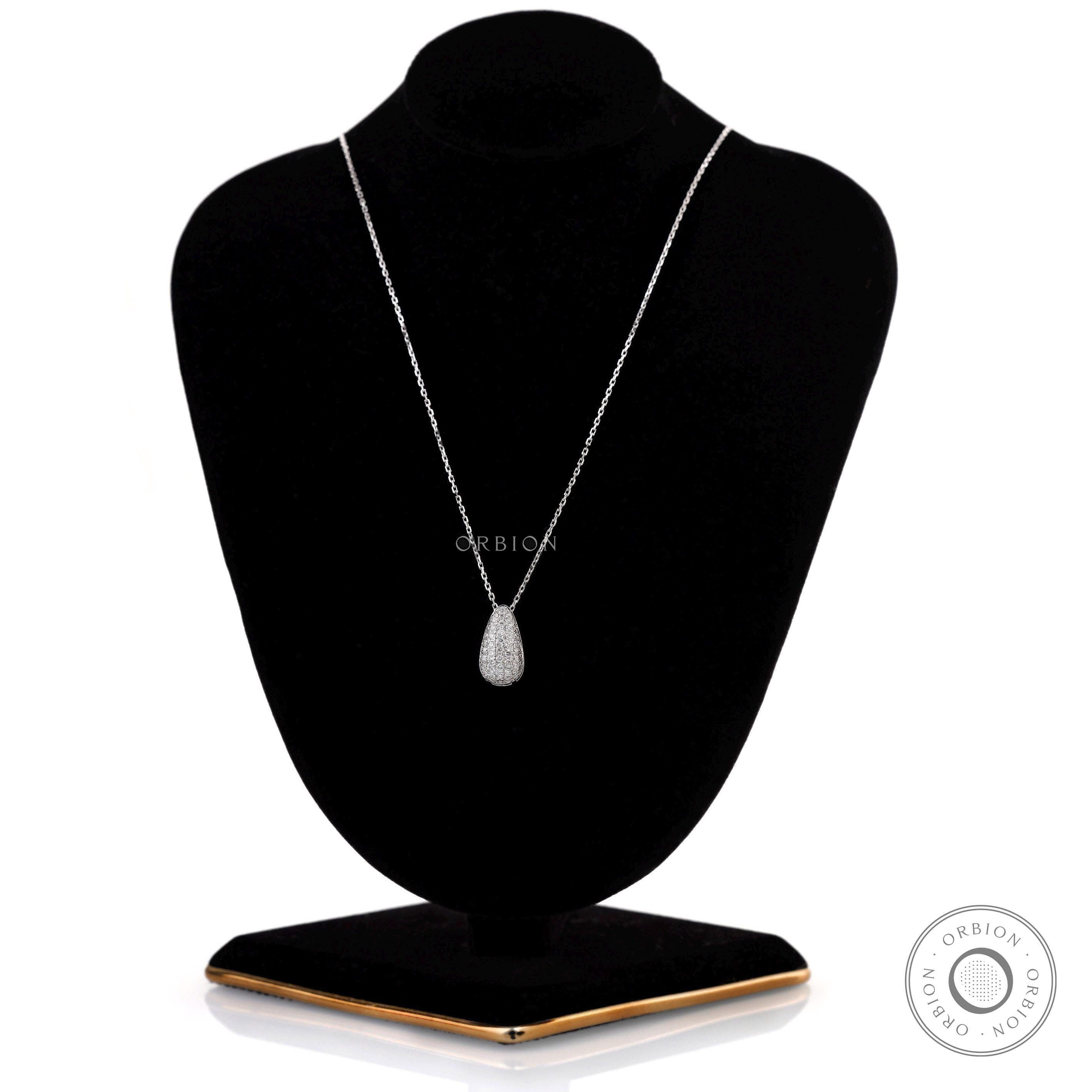 Pave Diamond Teardrop Necklace, Solid Gold Lab Grown Diamond Necklace, Minimalist Pear Shaped Chain Pendant, Daily Wear Necklace
