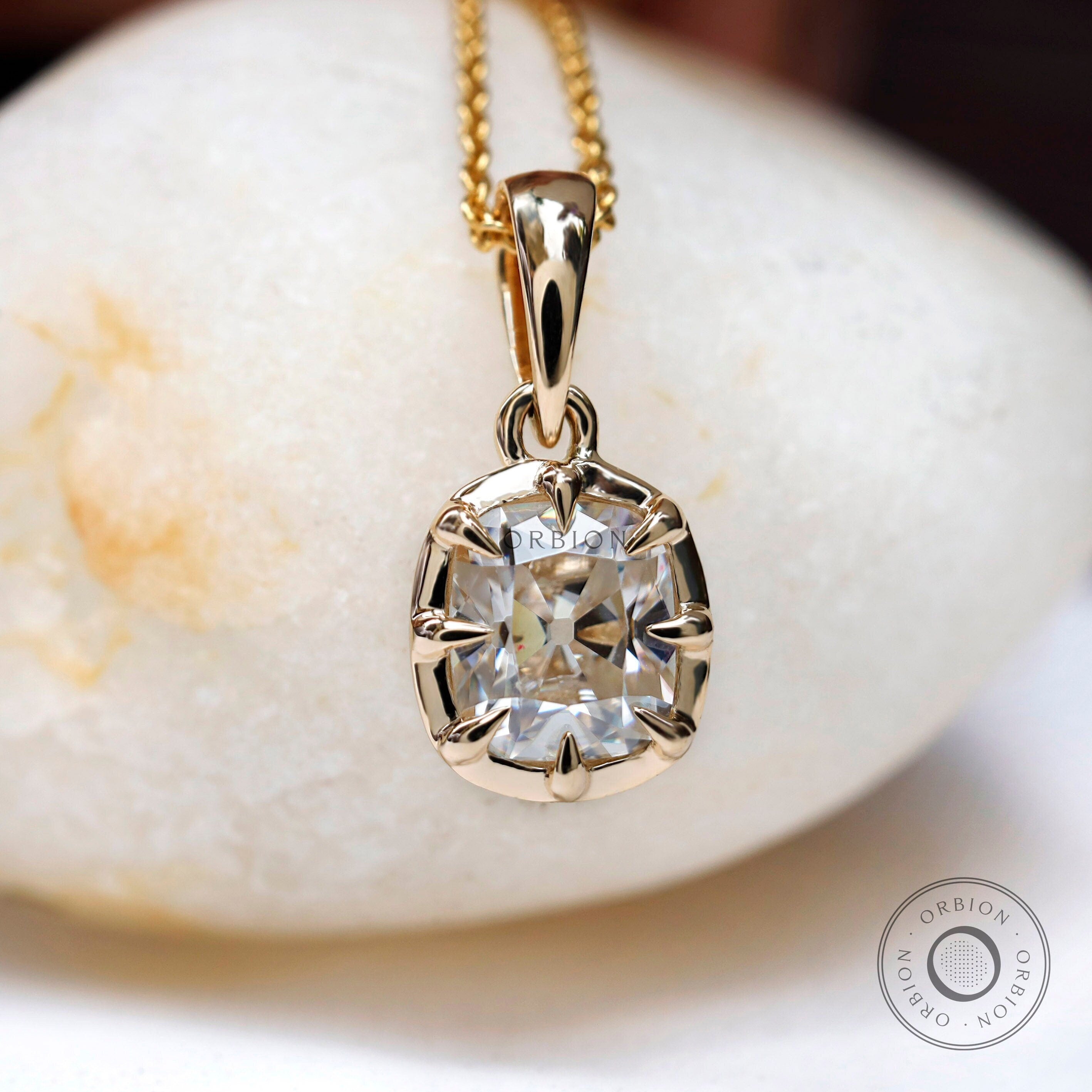7*6 MM DEF Old Mine Cut Moissanite Pendant Georgian Era Bezel Pendant, Claw Prong Cushion Cut Pendant, Minimalist Statement Pendant
