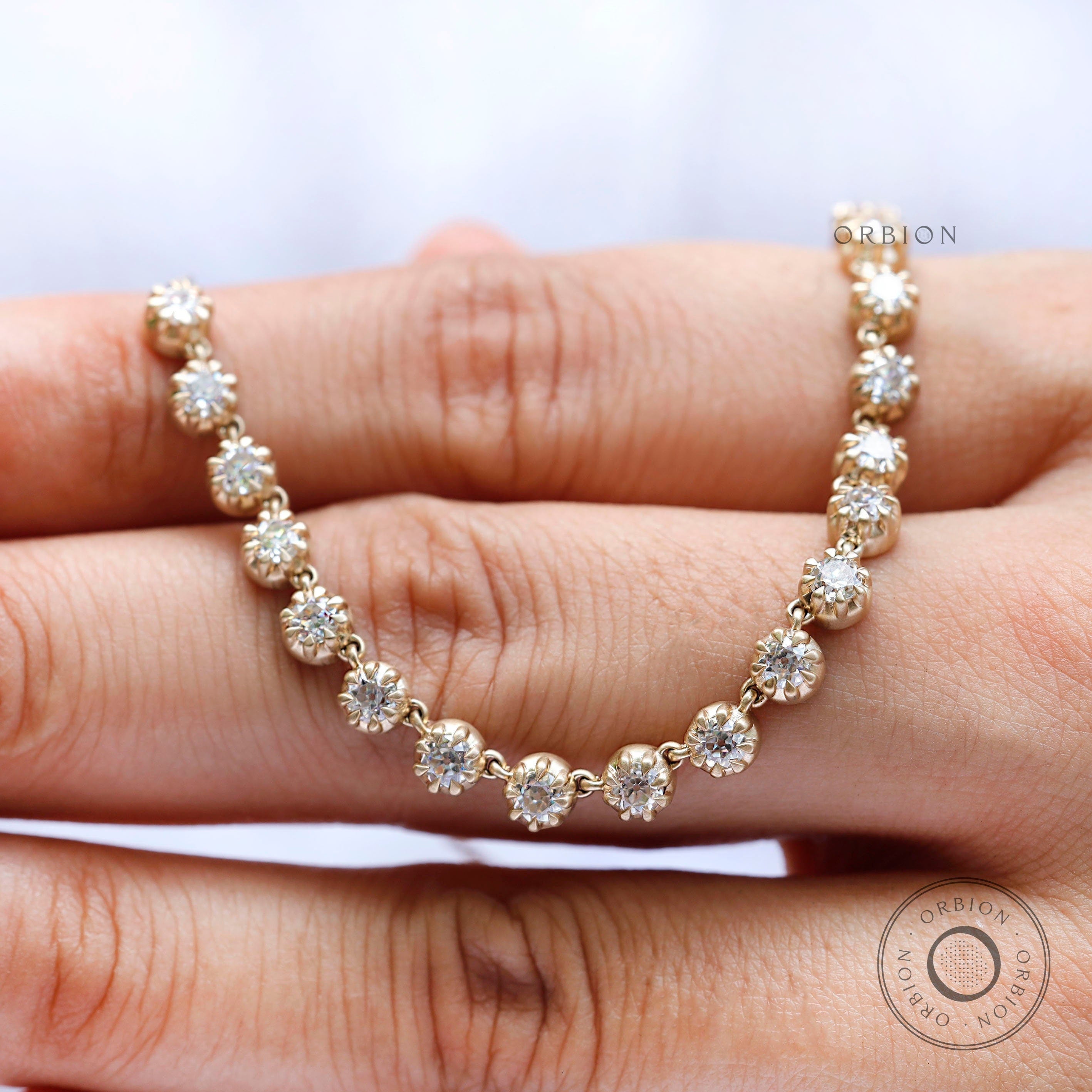 Round & Pear Cut Diamond Flexible Choker Necklace, Solid Gold Minimal Diamond Necklace, Lab Diamond Flexible Linking Statement Necklace
