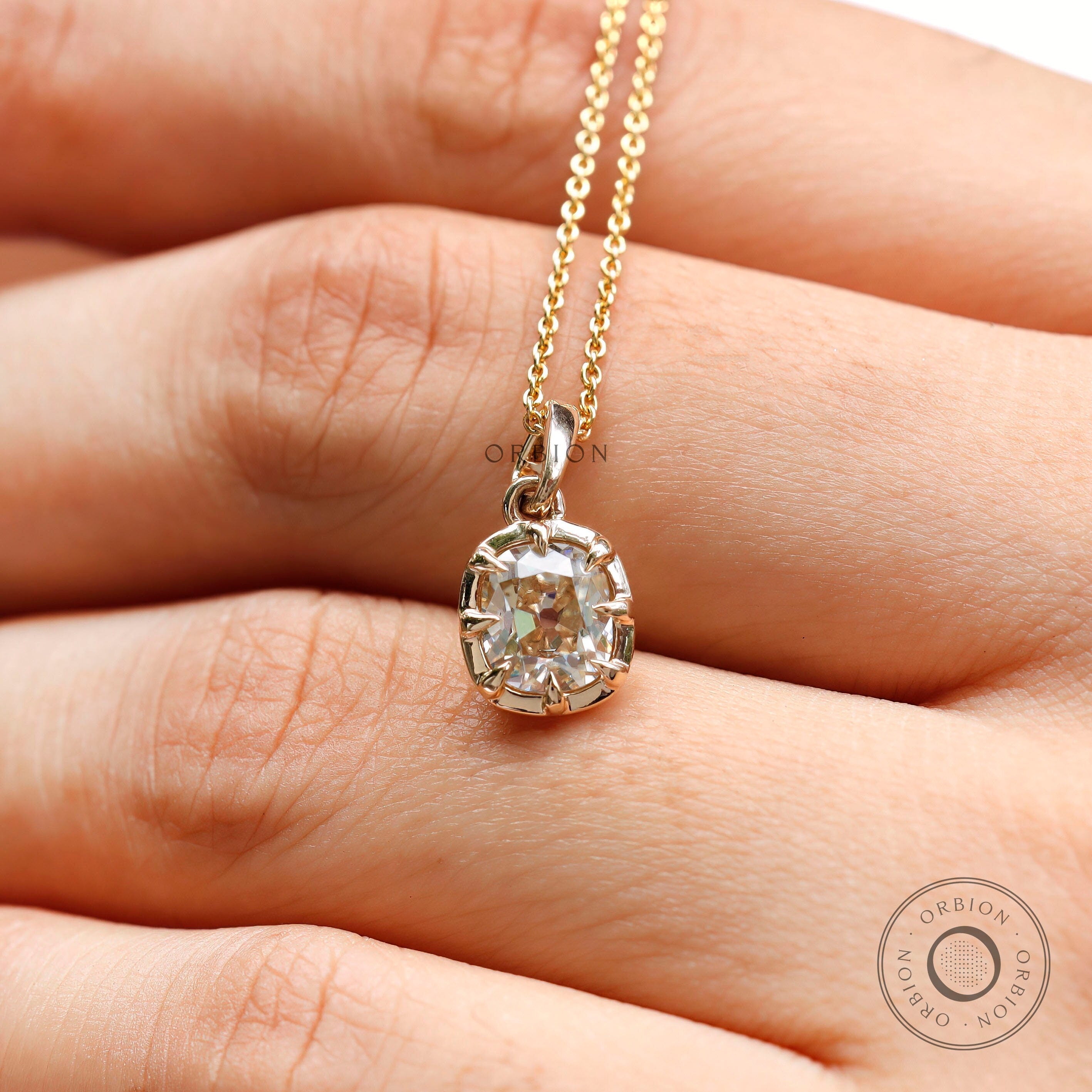 7*6 MM Old Mine Cut GHI Moissanite Pendant, Georgian Style Closed Bezel Pendant, Claw Prong Vintage Pendant, Minimalist Statement Pendant