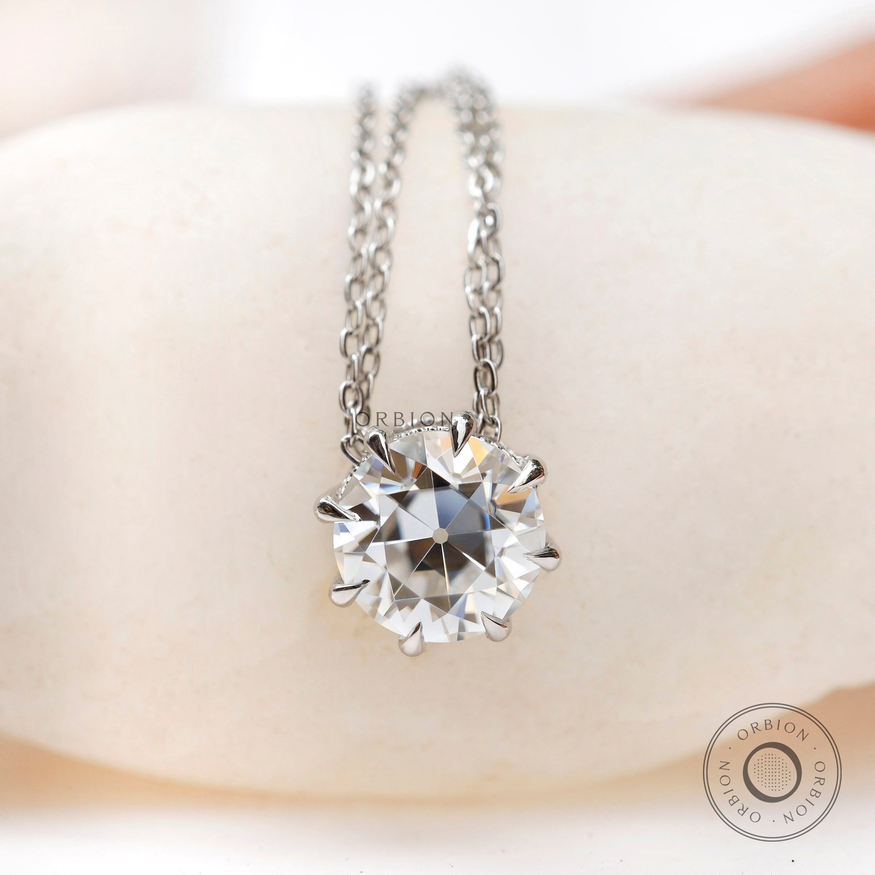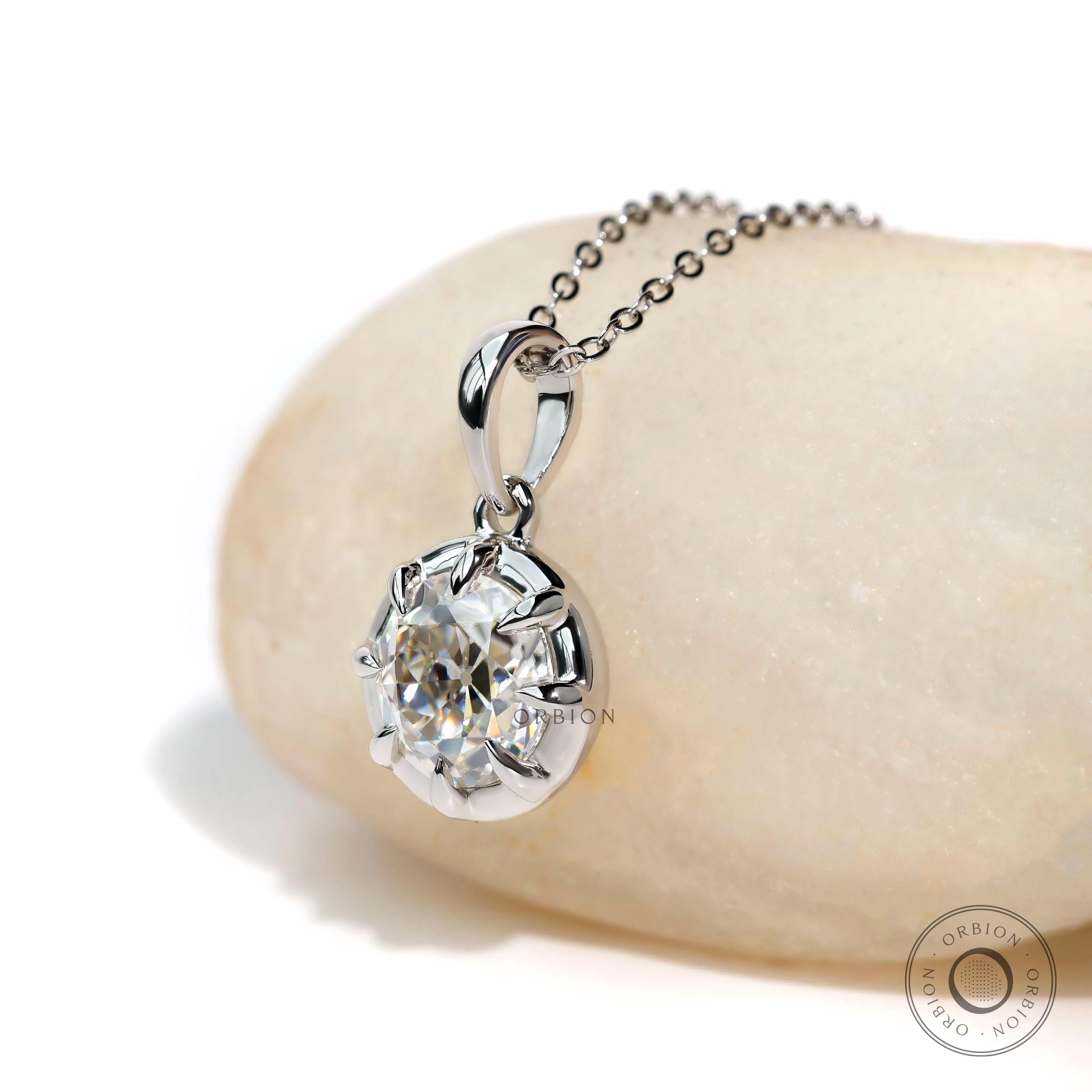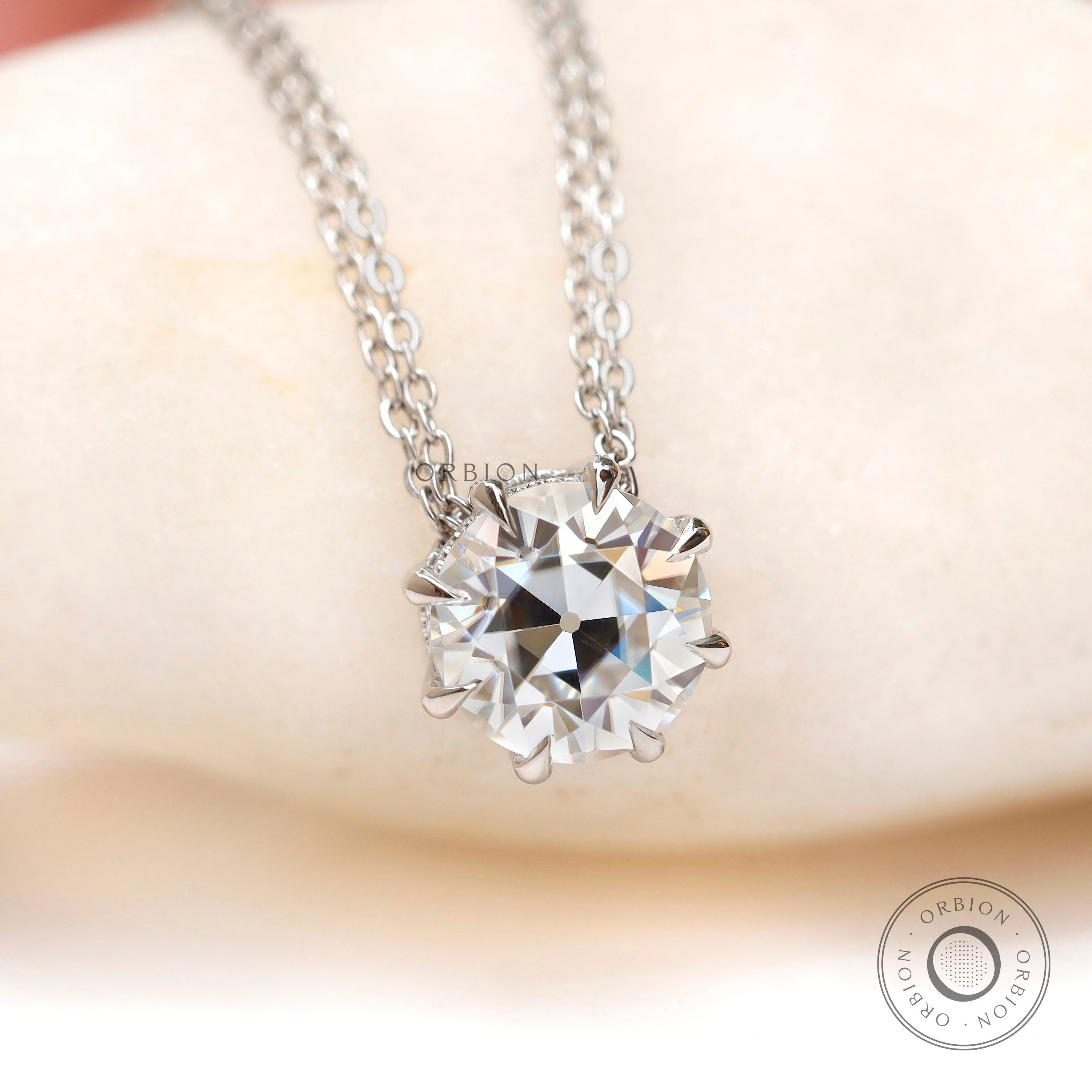 2 CT Tulip Set Old European Cut Moissanite Pendant, Solitaire Antique White Gold Pendant, Claw Prong Set Vintage Pendant, Georgian Jewelry