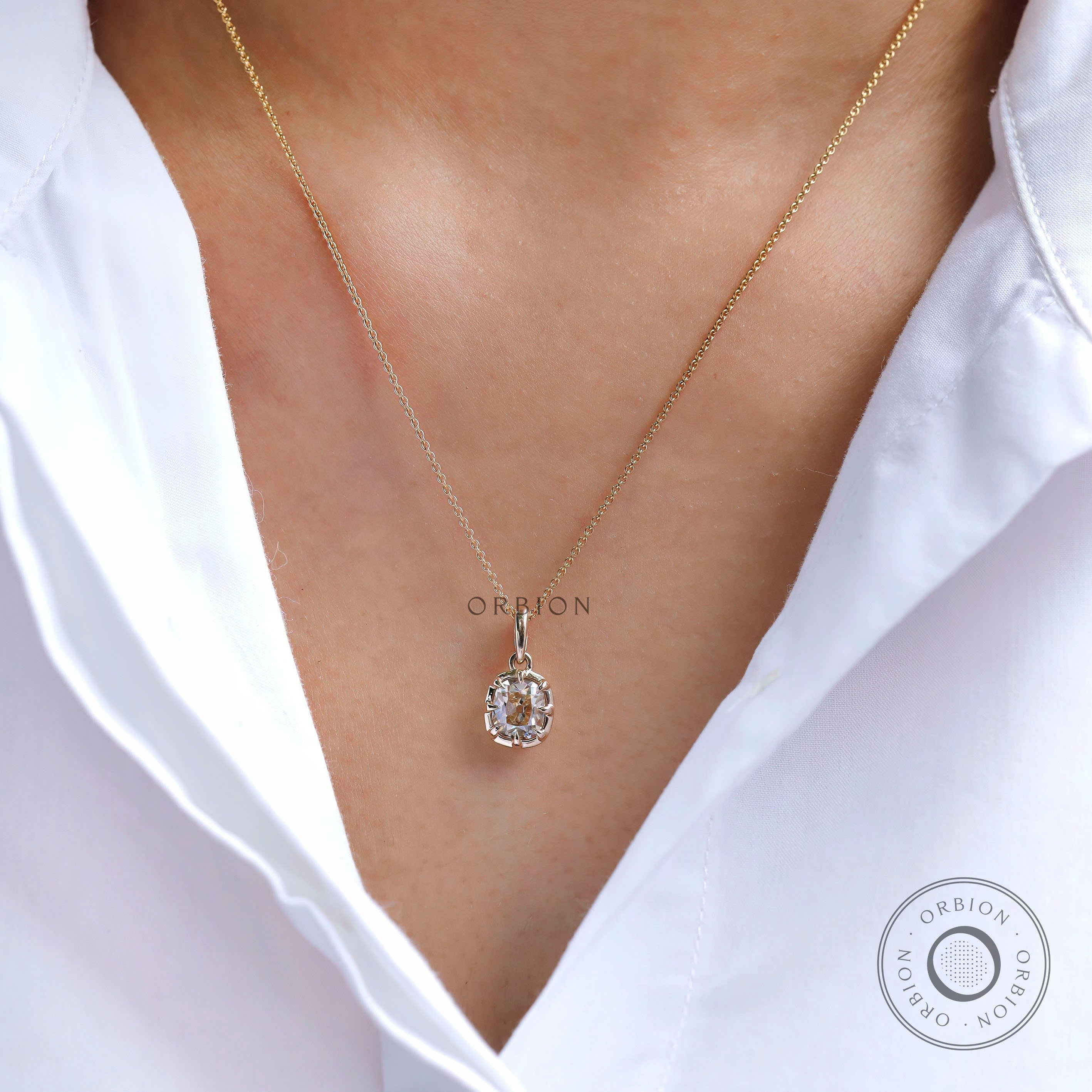 Old Mine Cut GHI Cushion Moissanite Pendant, Antique Georgian Pendant, Satin Matte Finish Gold Pendant, Vintage Pendant For Chain Necklace