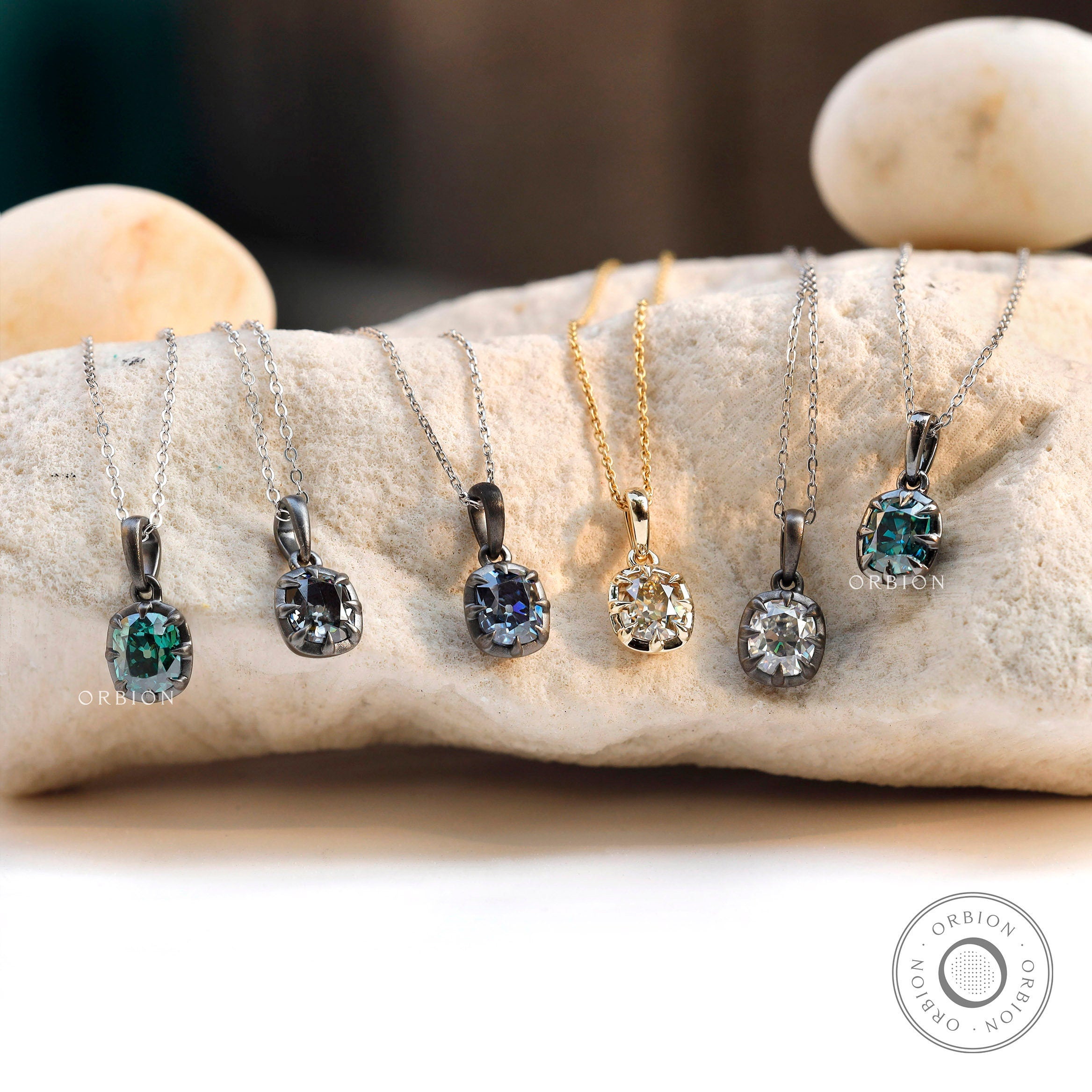 7*6 MM DEF Old Mine Cut Moissanite Pendant Georgian Era Bezel Pendant, Claw Prong Cushion Cut Pendant, Minimalist Statement Pendant