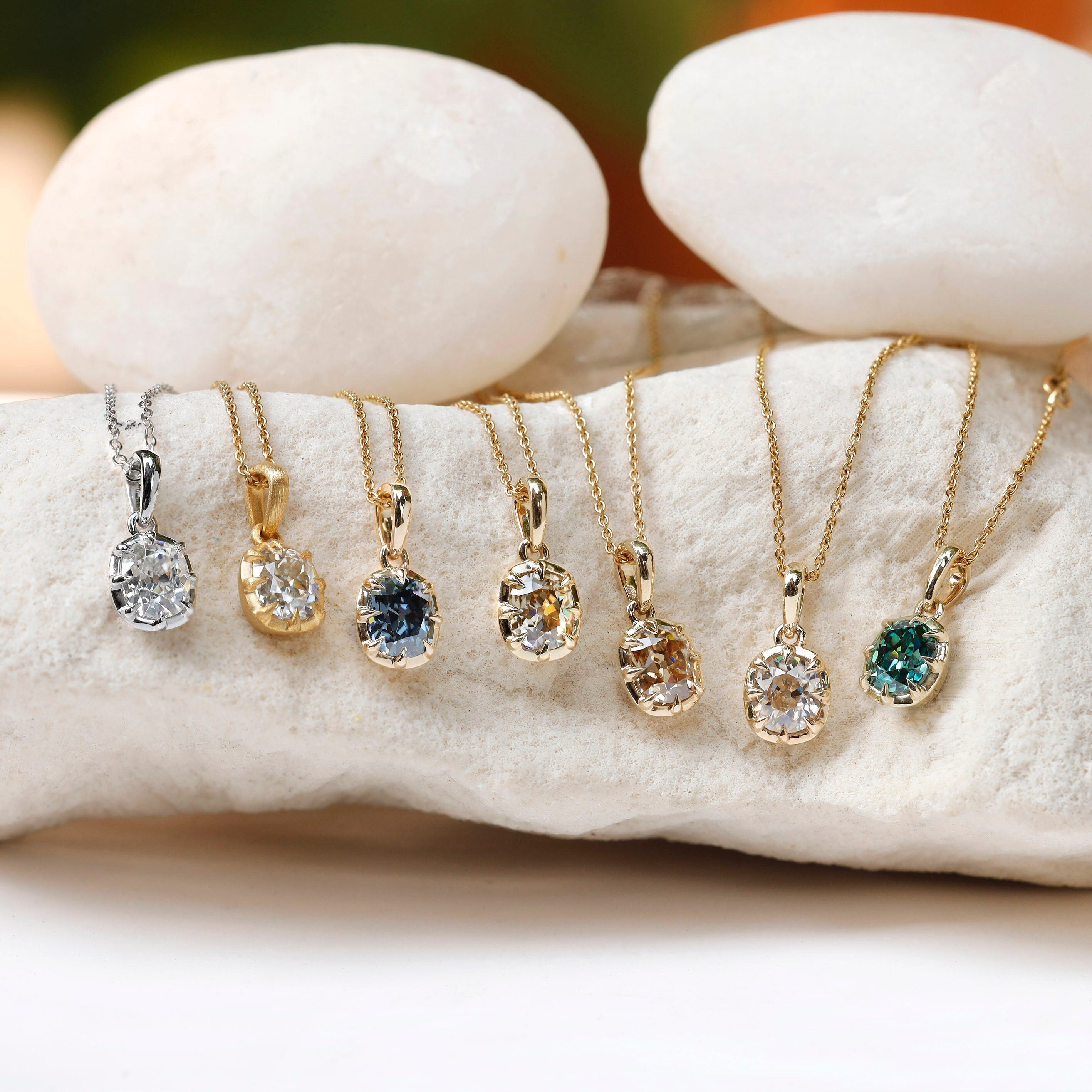 7*6 MM Elongated OMC Solitaire Moissanite Pendant, Dainty Minimalist Gold Pendant For Women, Georgian Style Vintage Jewelry, Bridesmaid Gift