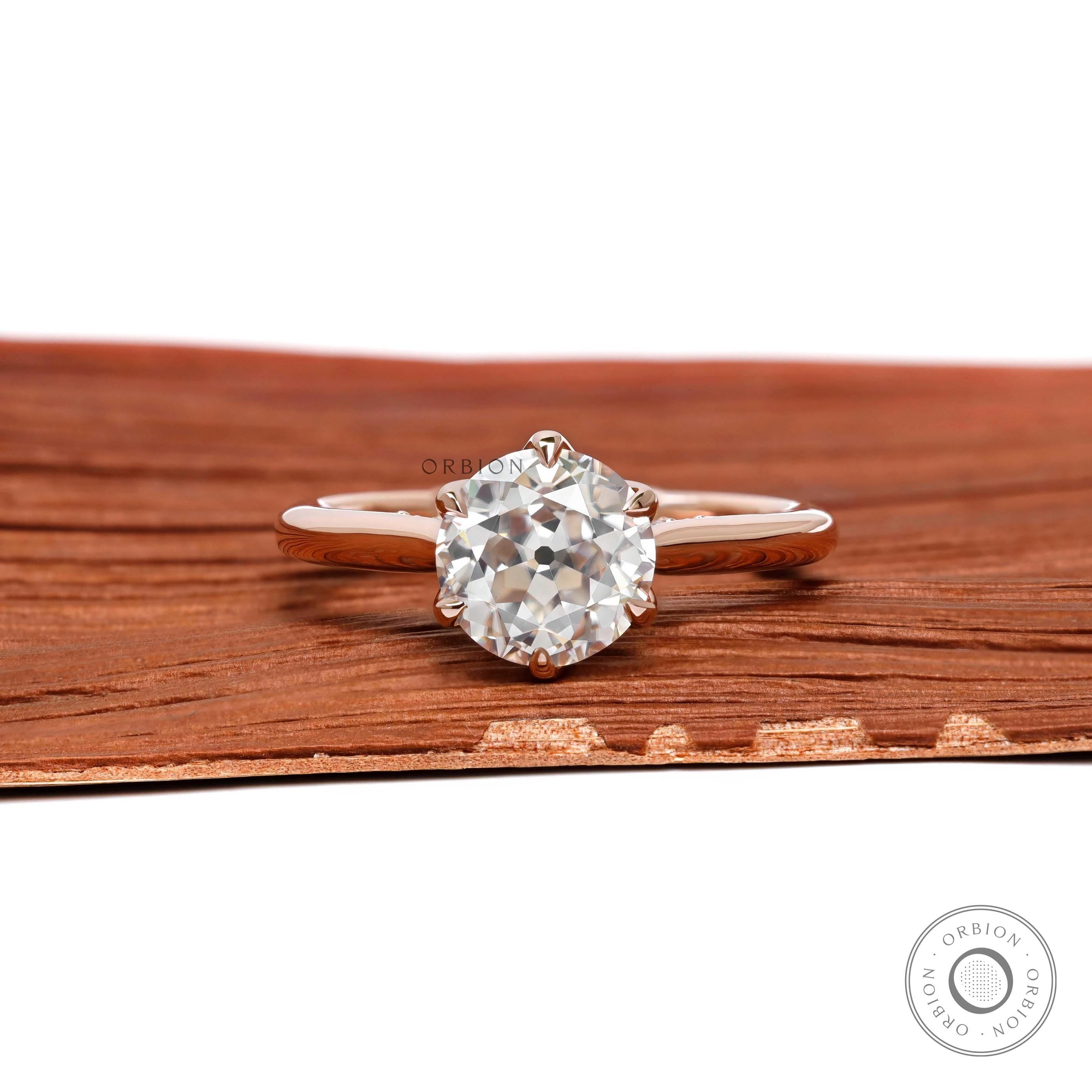 Old European Cut Moissanite Vintage Engagement Ring Tulip Setting Ring Hidden Accented Bridge Cathedral Shank Solitaire Wedding Ring