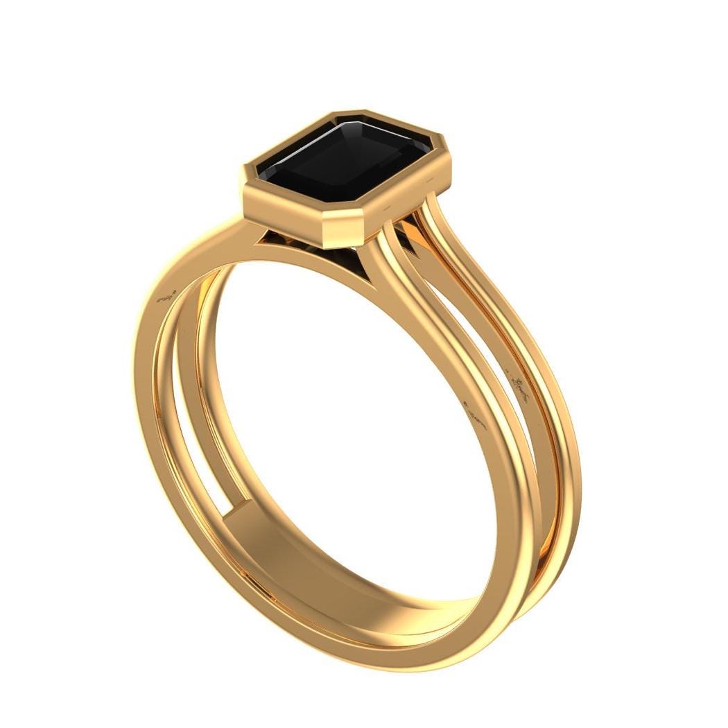 Black Emerald Cut Moissanite Ring, 10K Yellow Gold Twin Band Cathedral Bezel Set Engagement Ring, Anniversary Ring For Her