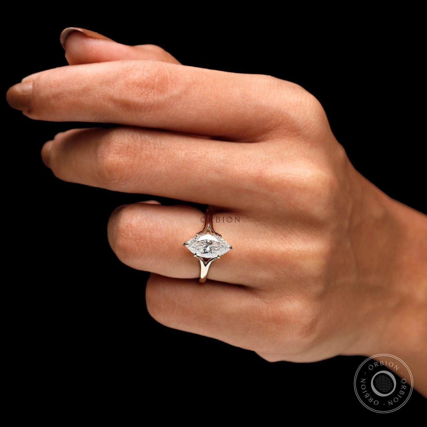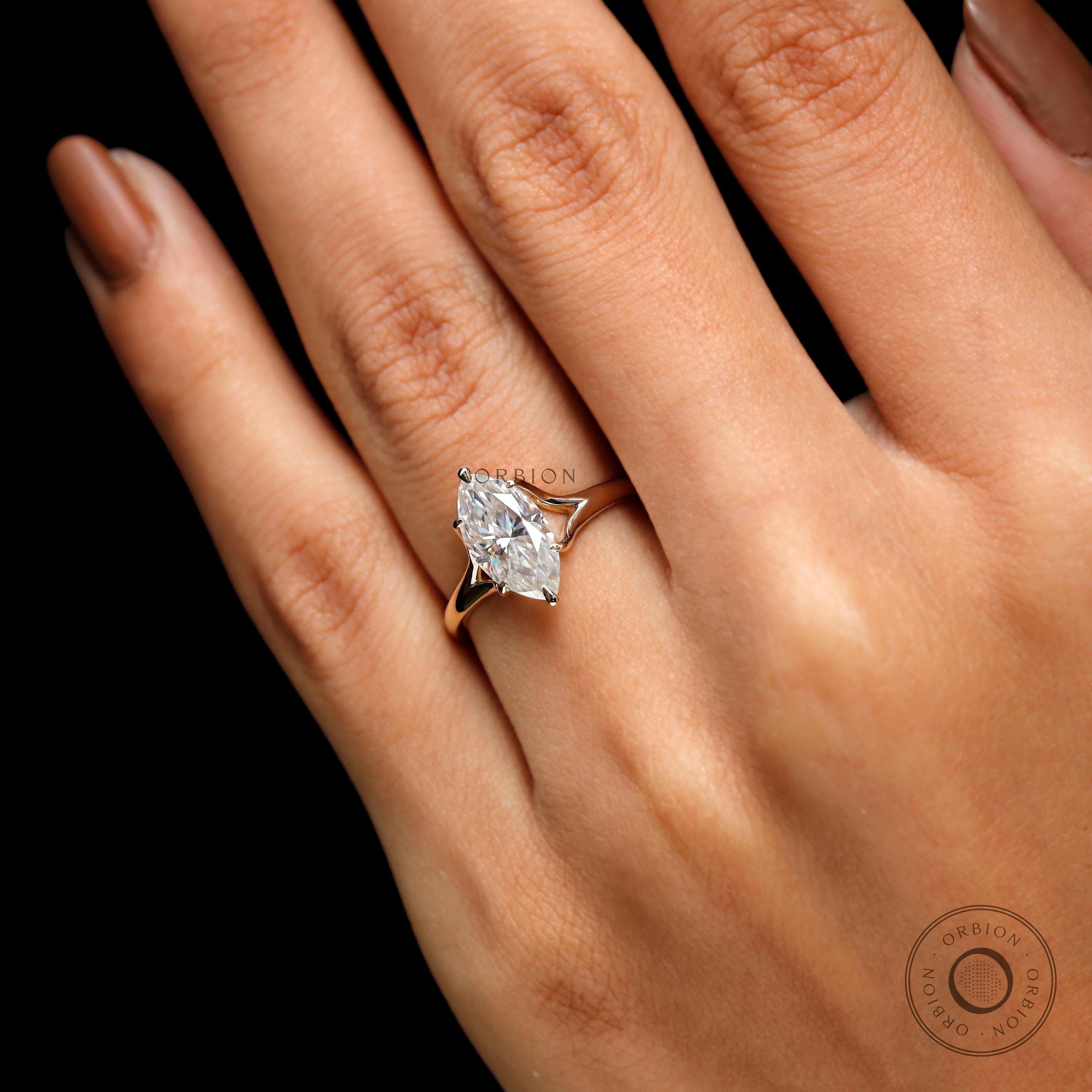 Solitaire Marquise Cut 6 Prong Moissanite Split Shank Engagement Wedding Ring 14k Yellow Gold Unique Promise Anniversary Proposal Ring Women