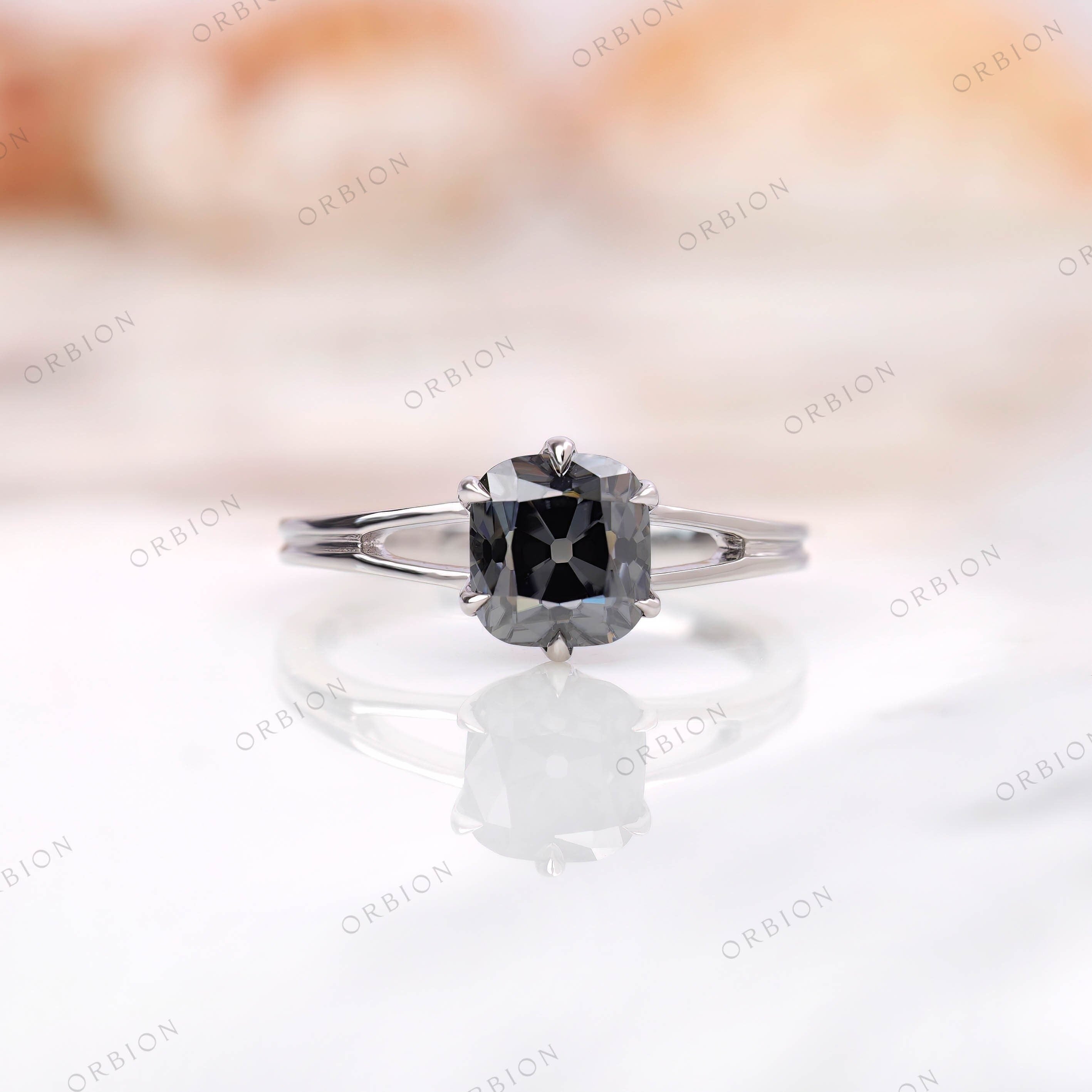 1.7 CT Old Mine Cut Elongated Cushion Grey Moissanite Vintage Engagement Ring for Her, Solitaire Ring, 18K White Gold Ring, Split Shank Ring