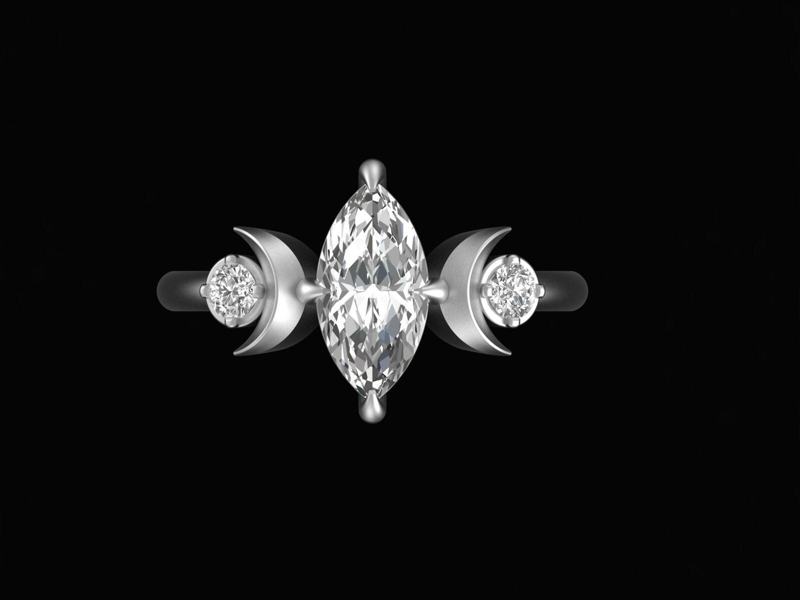 Marquise Cut Moissanite Celestial Style Ring, 10K Solid White Gold Vintage Ring For Her, Moissanite Engagement Ring, Promise Ring