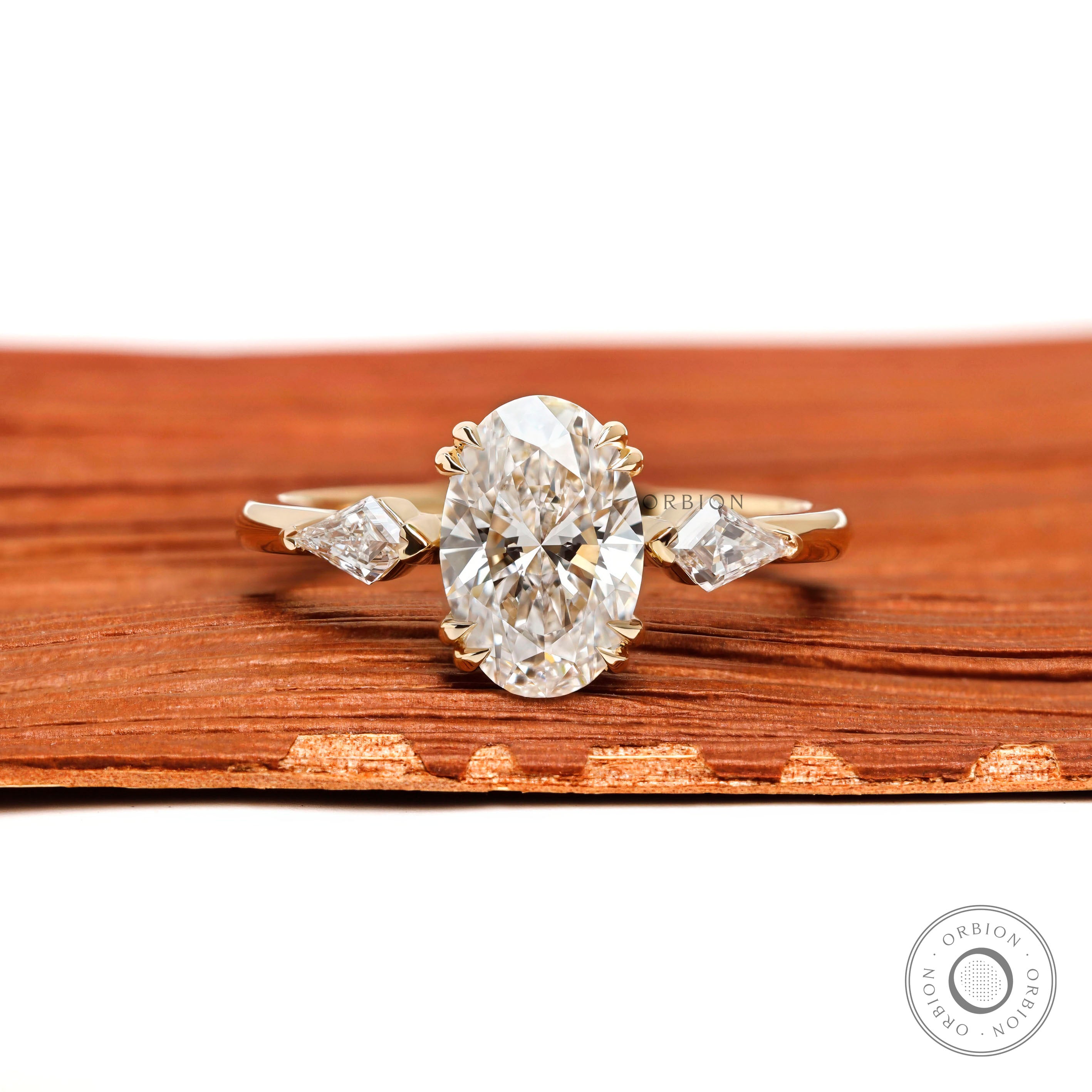 Three Stone Oval Lab Diamond Moissanite Engagement Ring 10k 14k 18k Yellow Gold Kite Cut Side Stones Double Prong Trilogy Oval Travel Ring