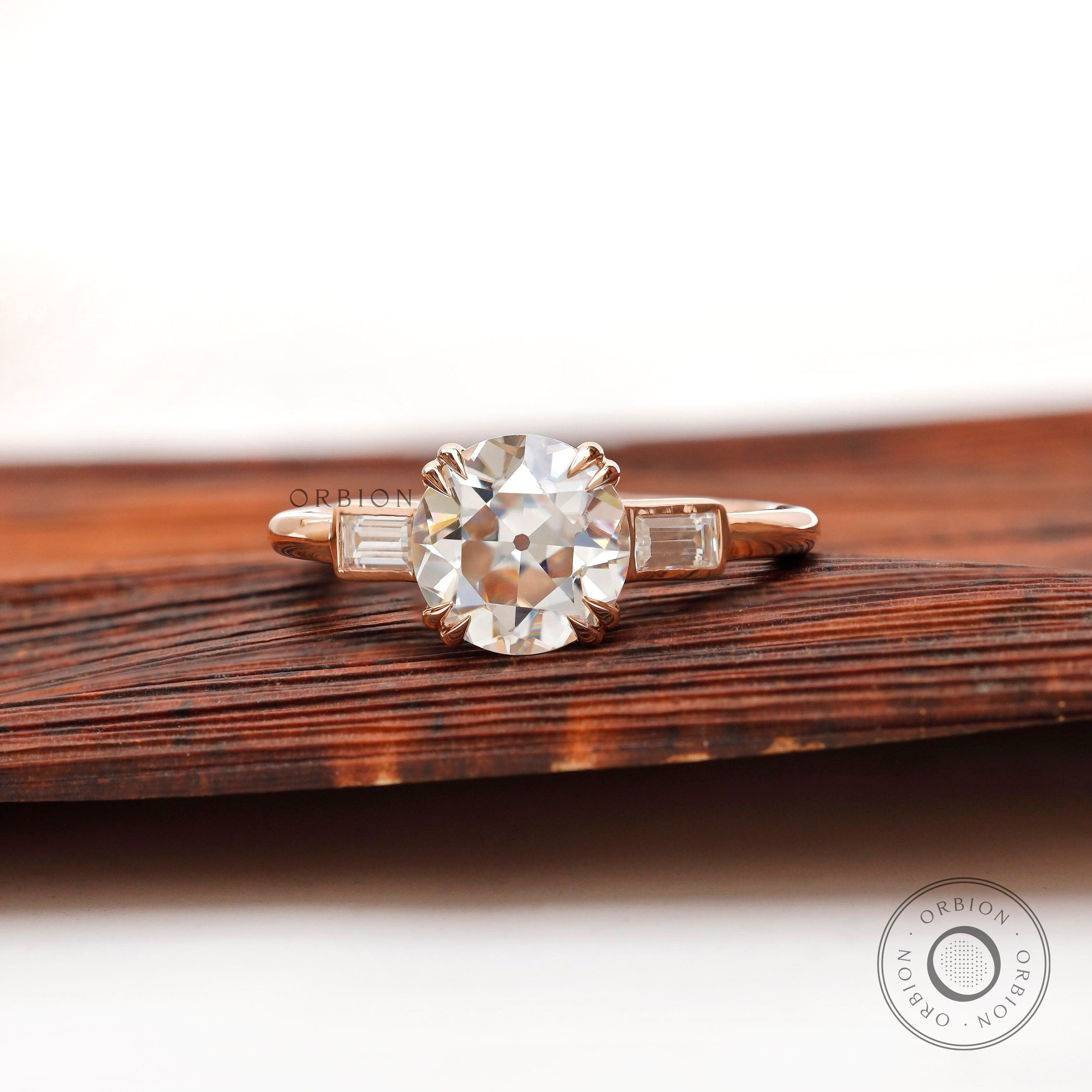 Old Cut Three Stone Ring, Three Stone Engagement Ring, OEC Moissanite Ring, 14k Rose Gold Rings, Cathedral Rings, Anniversary Gift For Her