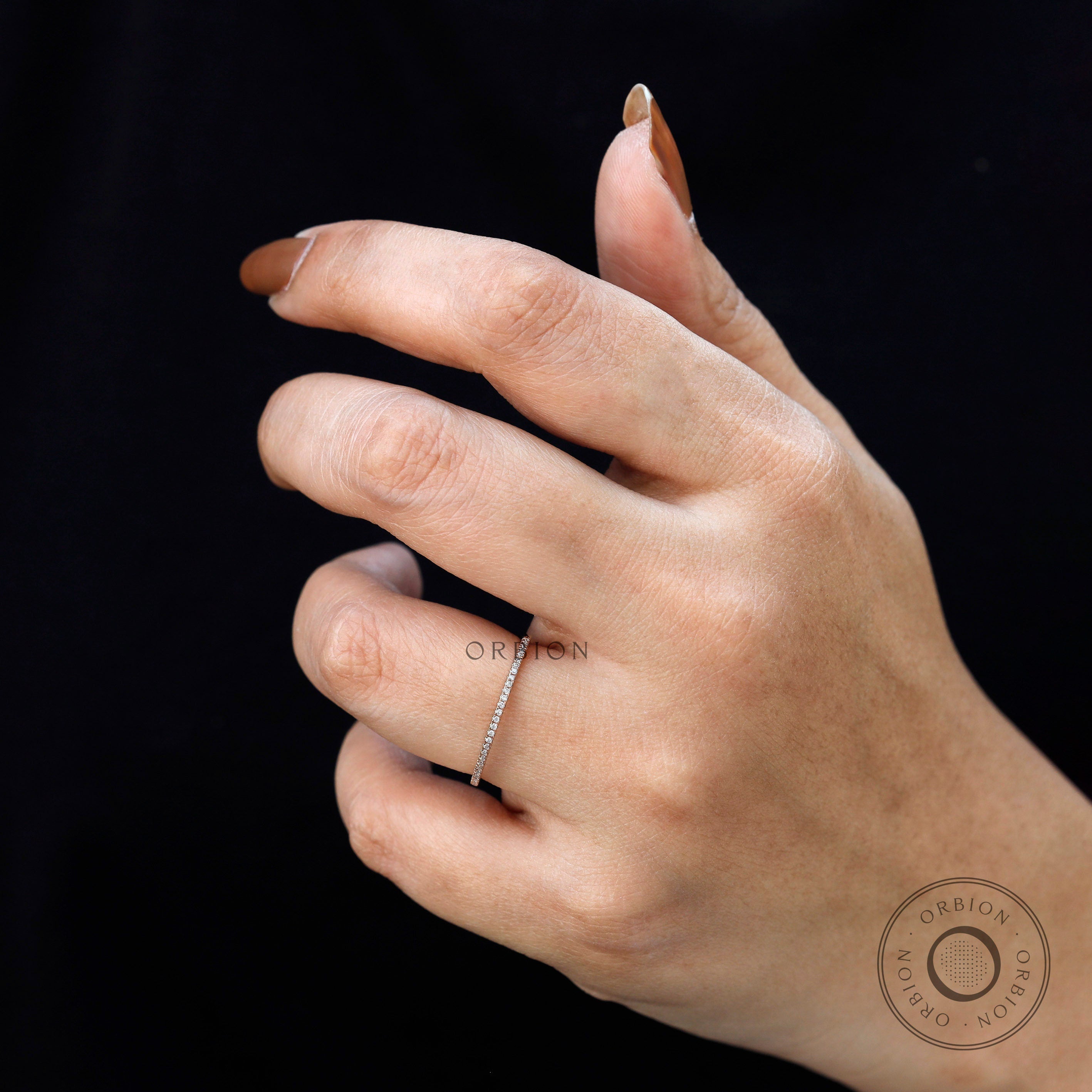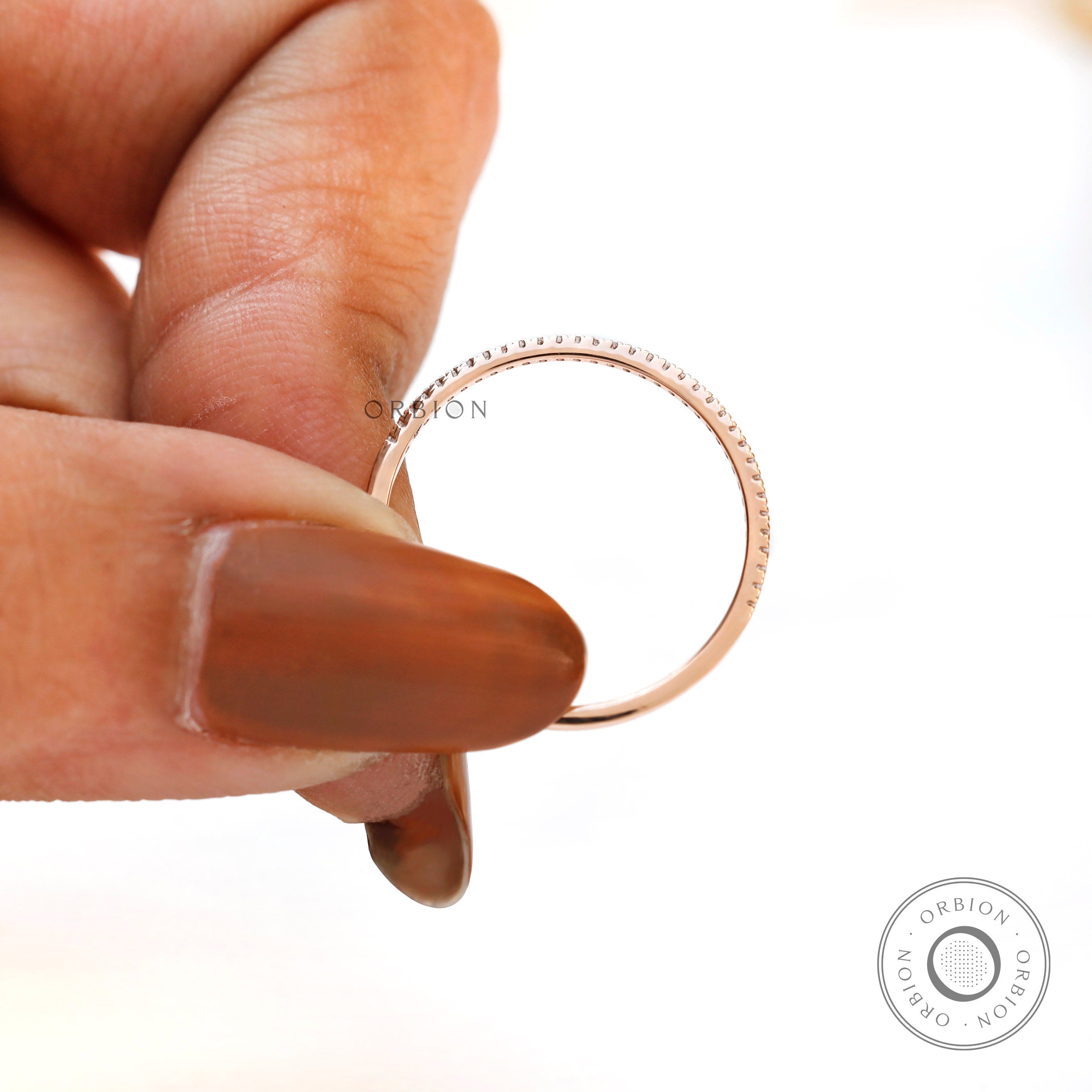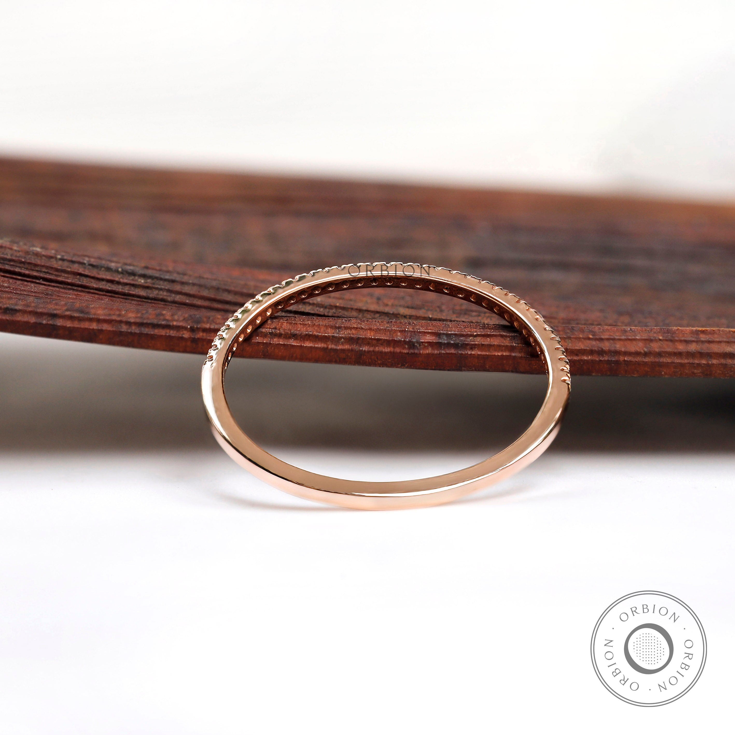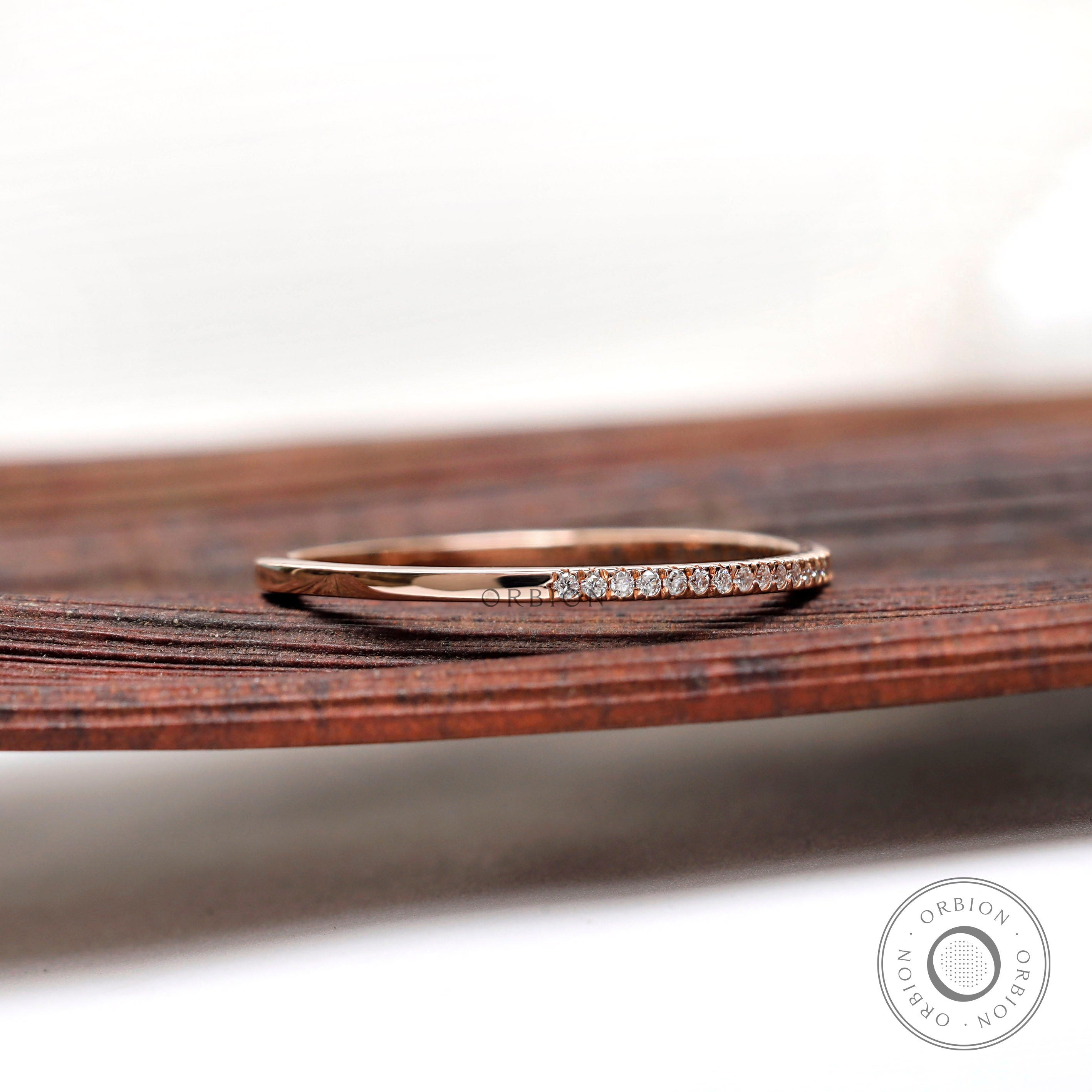 1.20 MM Micro Pave Half Eternity Wedding Band, 14K Rose Gold Moissanite Band, Classic Stacking Matching Band, Delicate Thin Gold Band, Thin Wedding Band, Stacking Band, Dainty Women Band, Handmade Ring, Anniversary Gift, Lab Grown Diamond Band, Tiny Diamond Band
